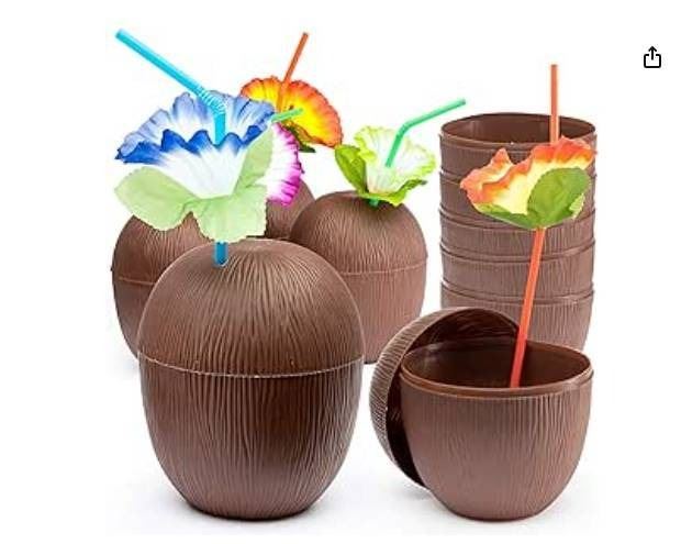 Prextex Coconut Cups With Hibiscus Straws Ð 18 Pieces