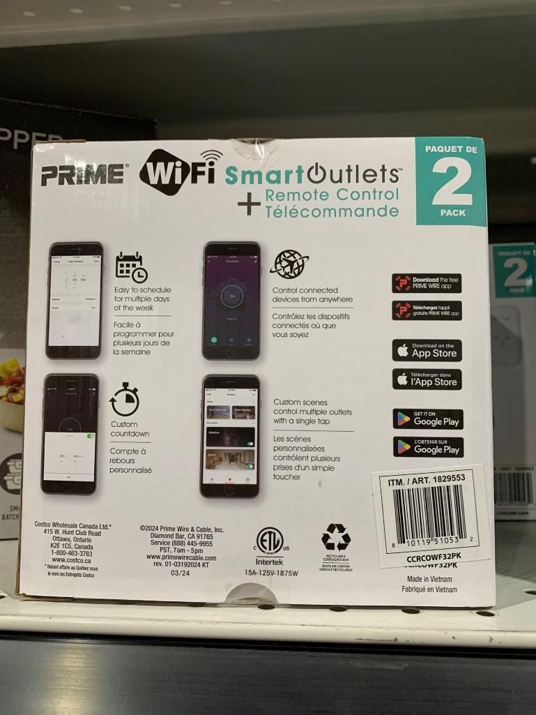 Prime WiFi Smart Outlets 2-Pack With Remote Control