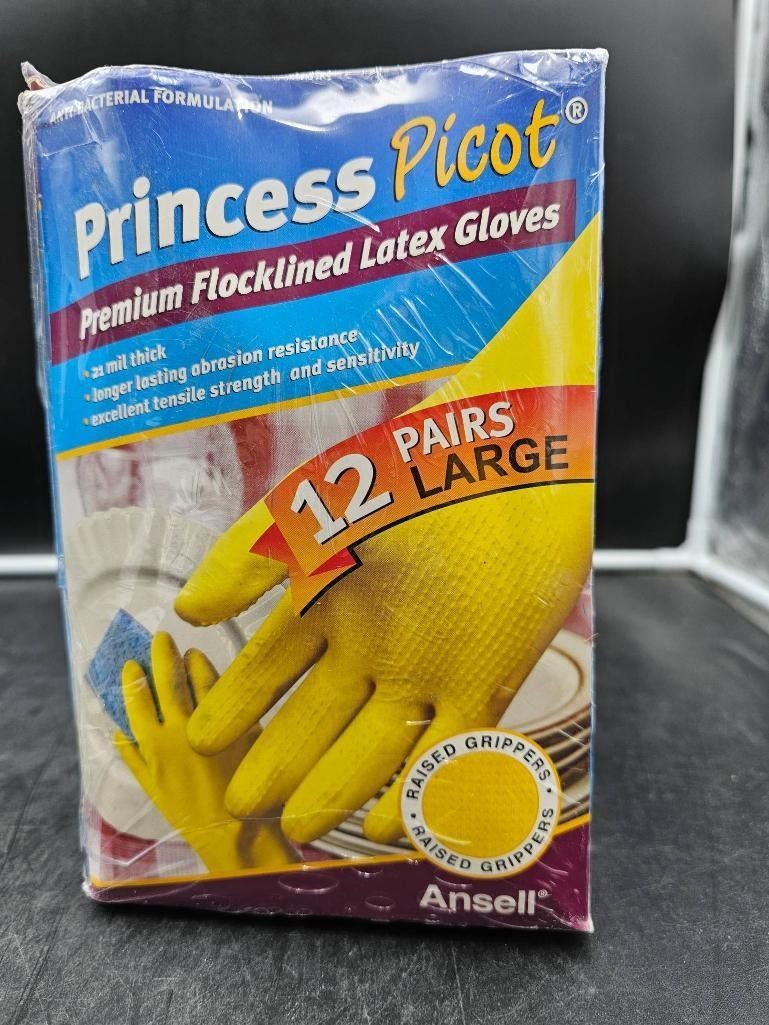 Princess Picot Premium Flocklined Latex Gloves, 12 Pairs, Large Size