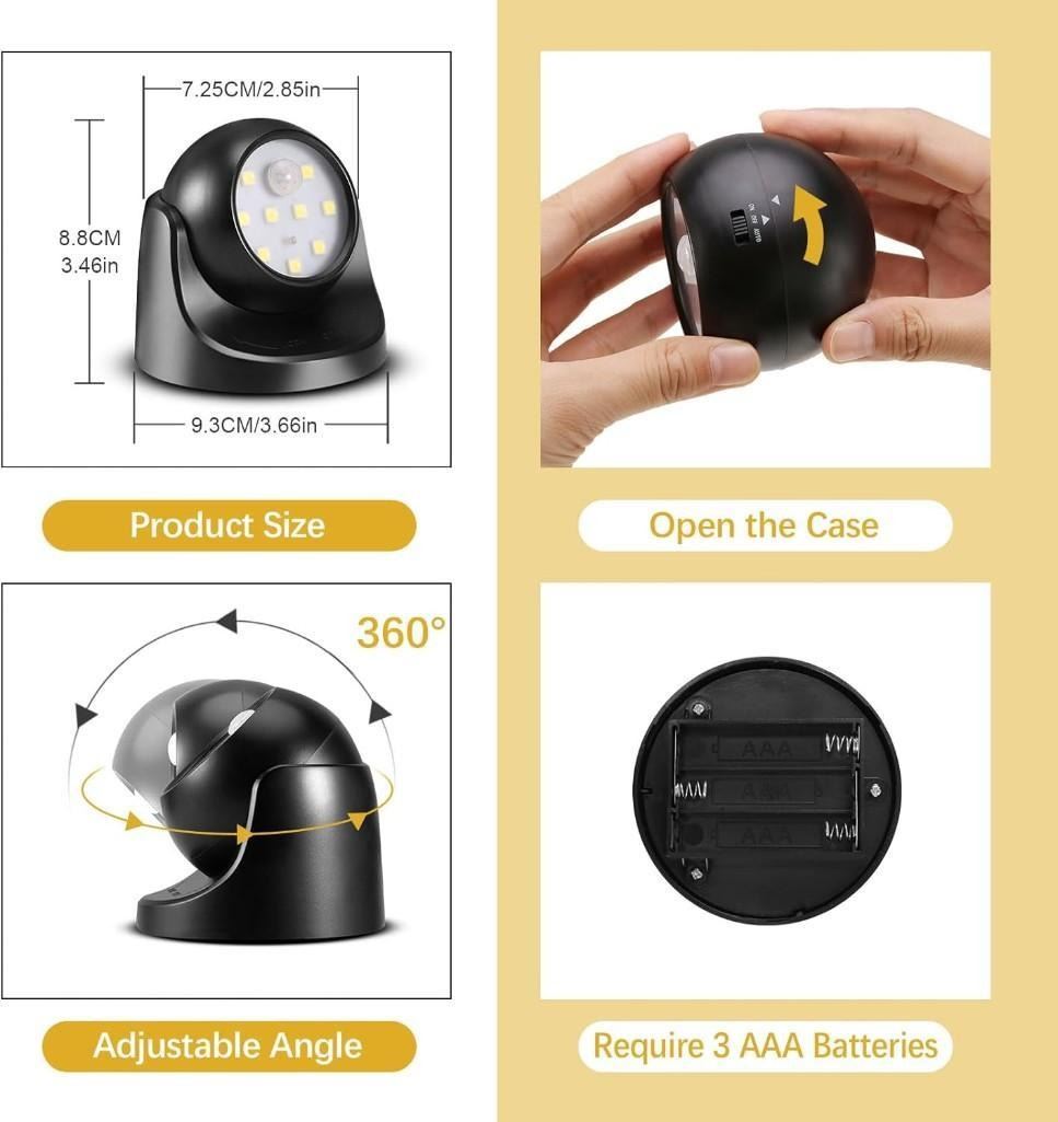 ProGreen 6000K Battery Operated Motion Sensor Light Waterproof Wireless LED Battery Powered Wall Light Auto On/Off 2 Pack Cool White
