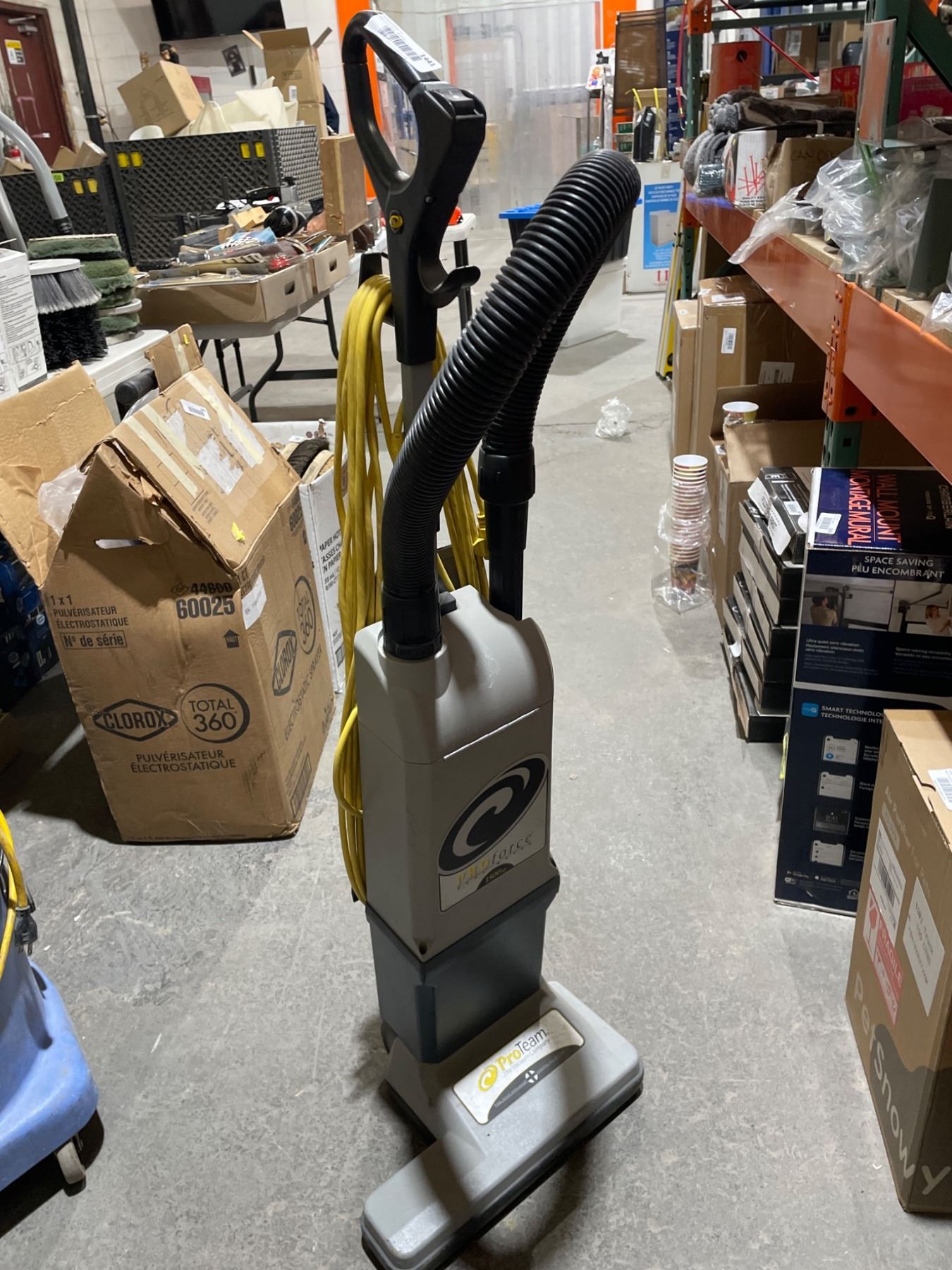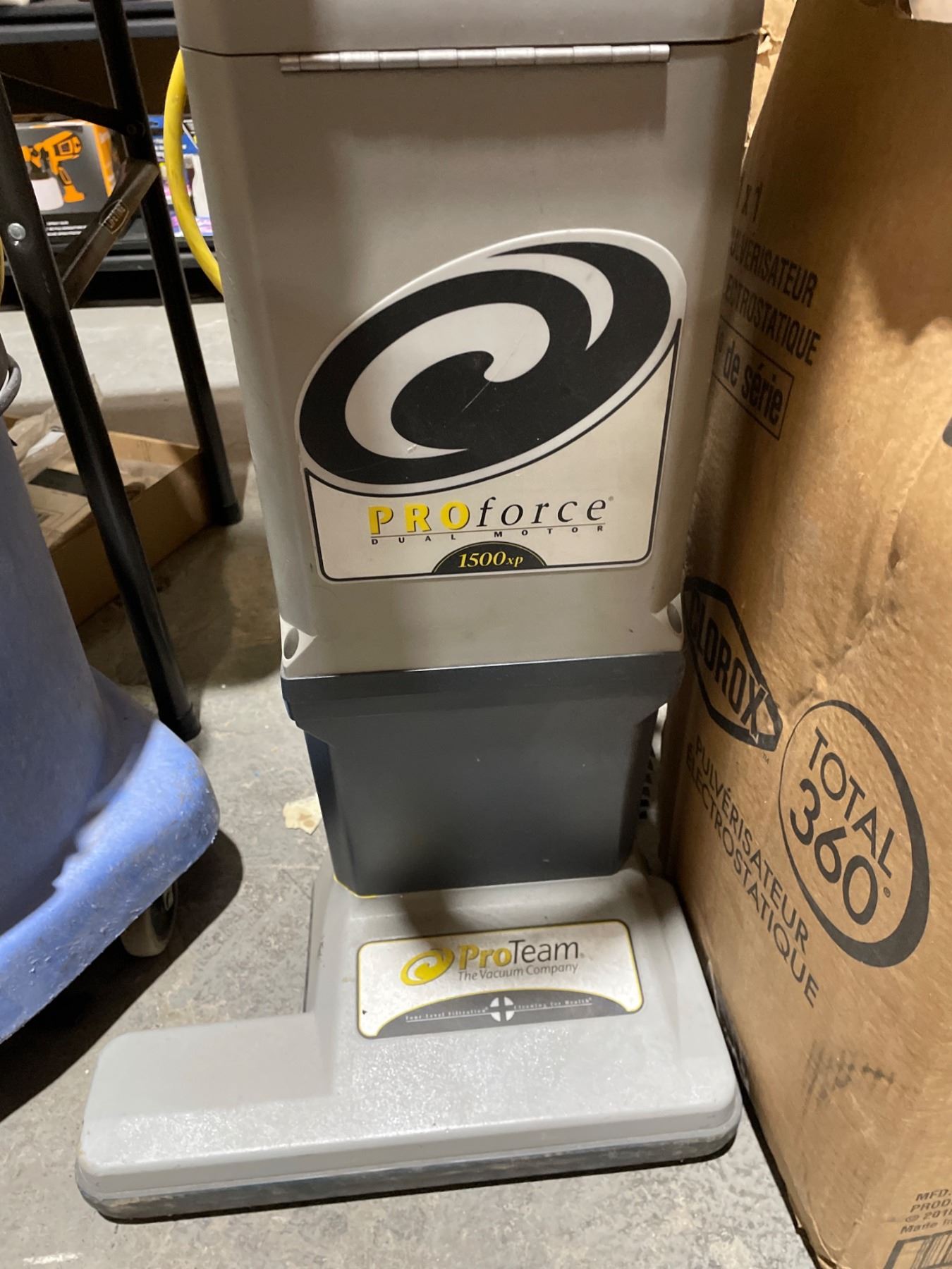 ProTeam ProForce 1500XP dual-motor, upright vacuum cleaner with a hose and auxiliary tools