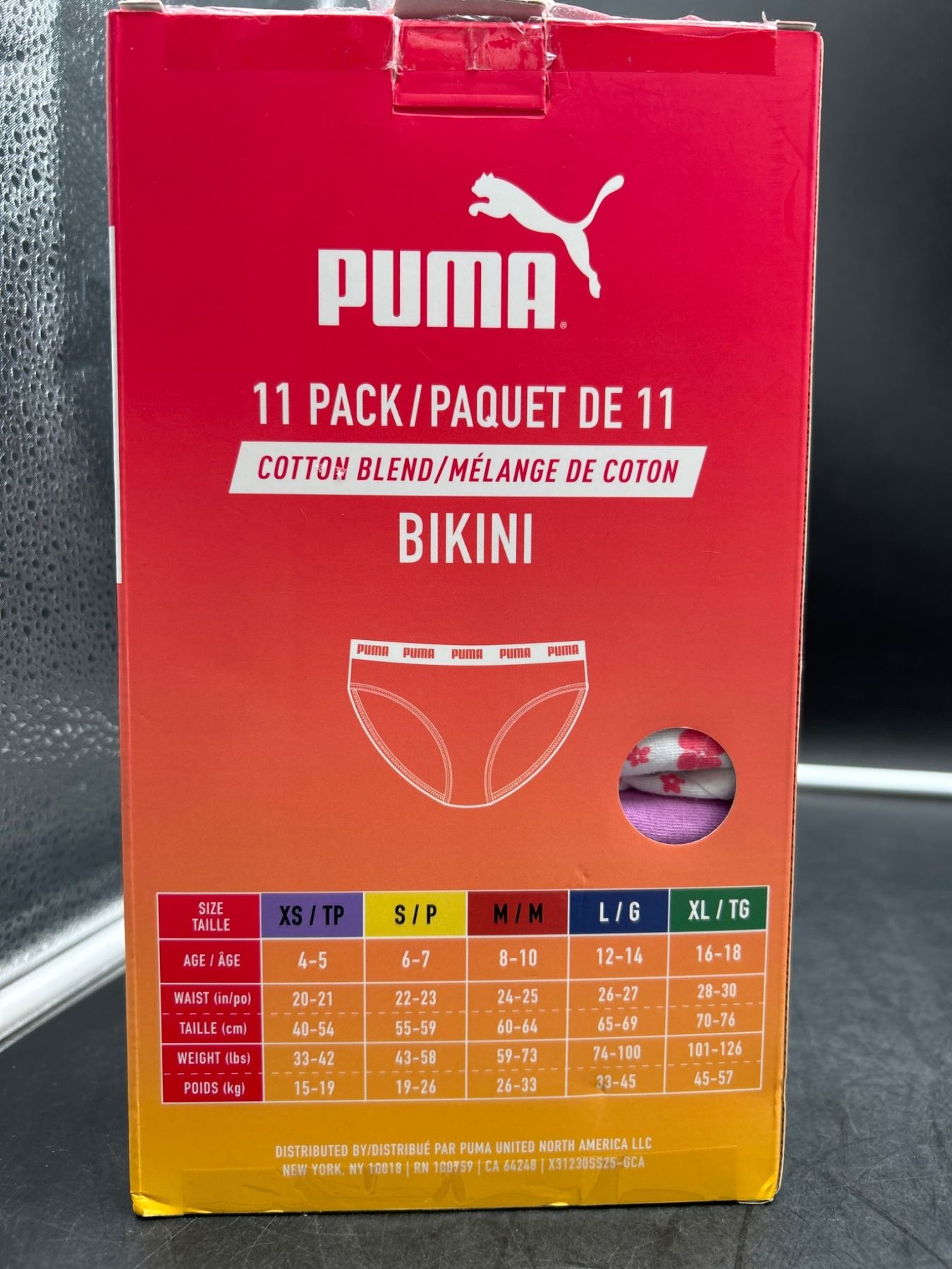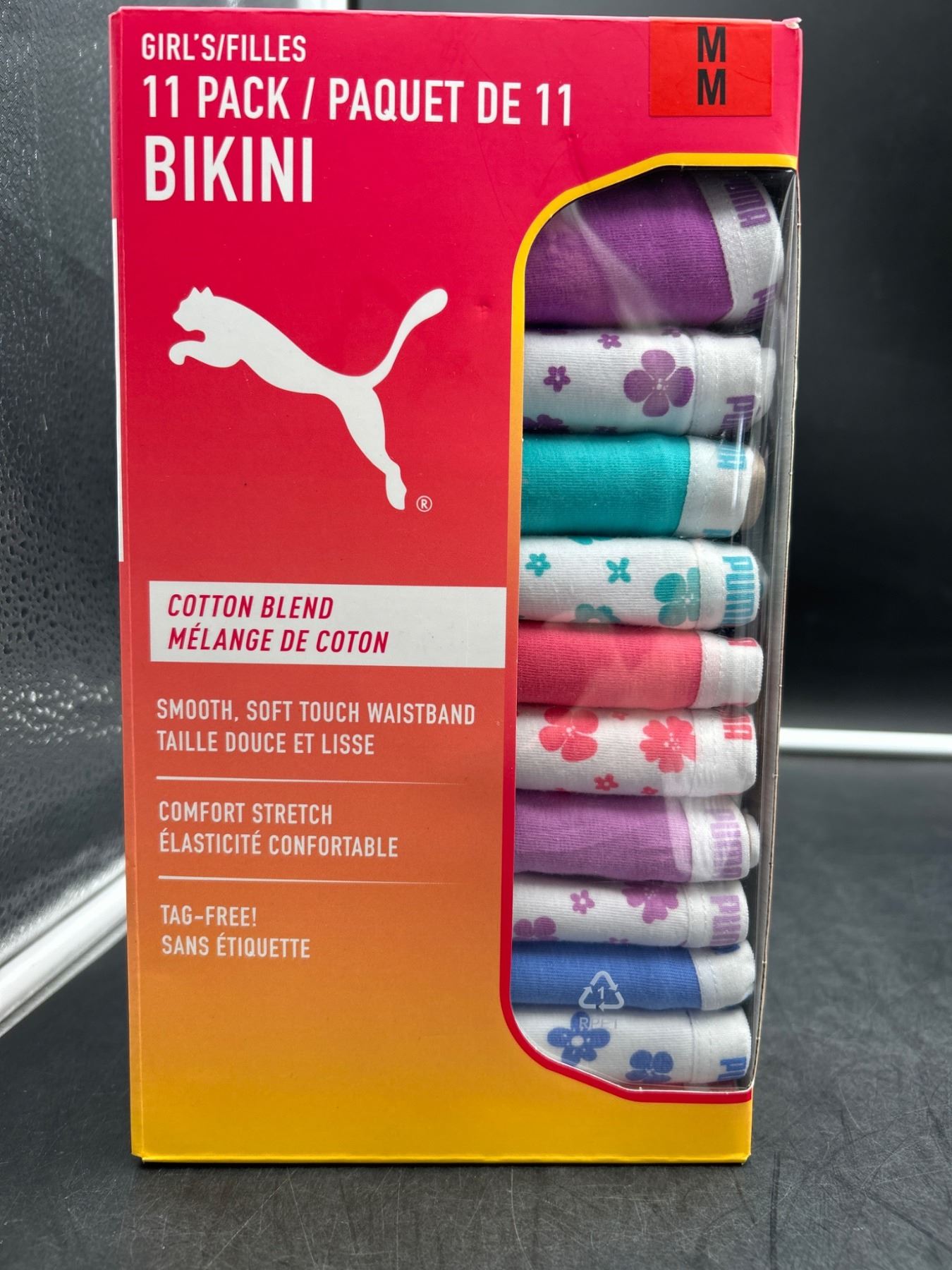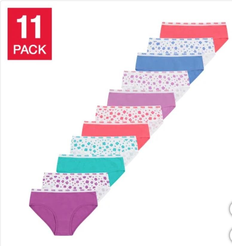 Puma Girls’ 11-Pack Cotton Blend Bikini, Size MM