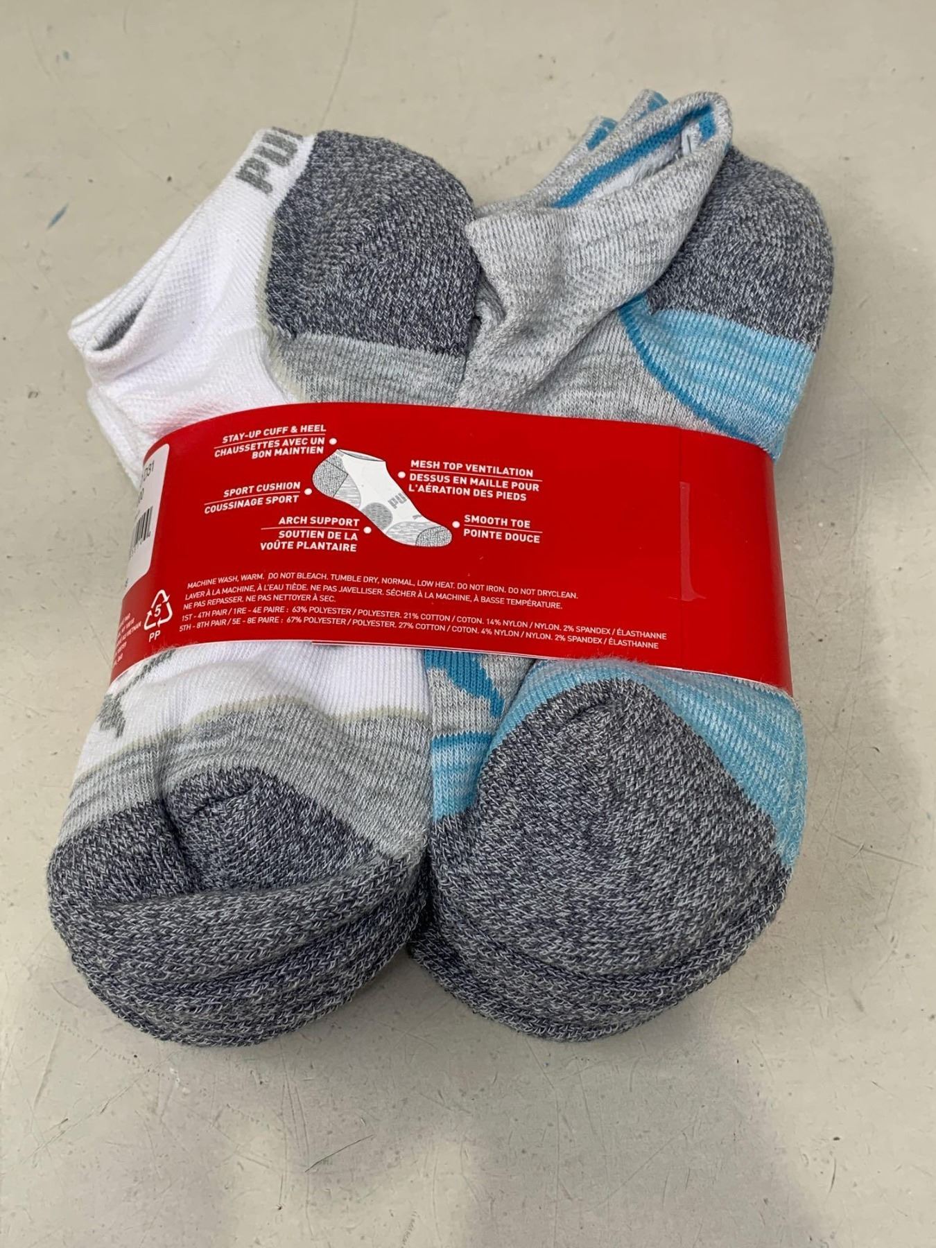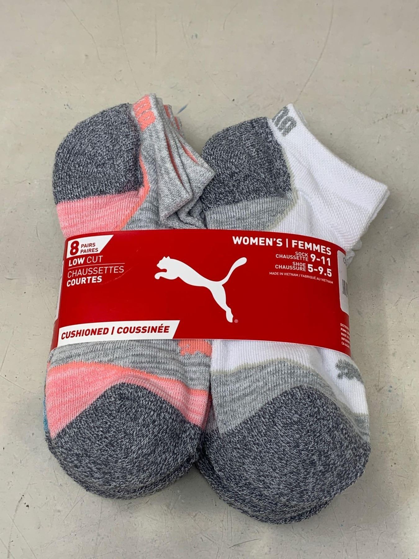 Puma low cut socks, 8 pairs (fits shoe size 5-9)