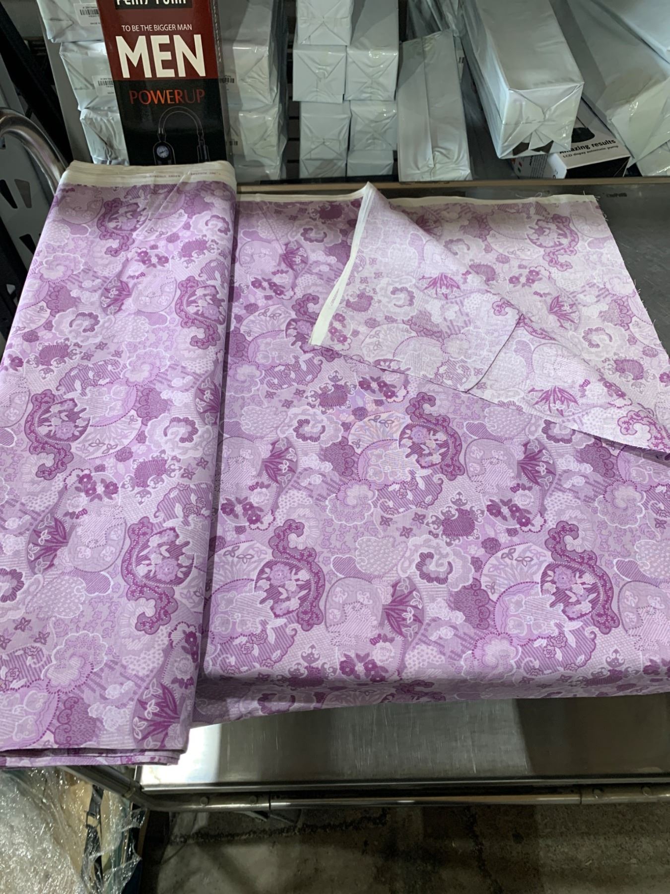 Purple Floral Fabric Roll with Repeating Design Pattern