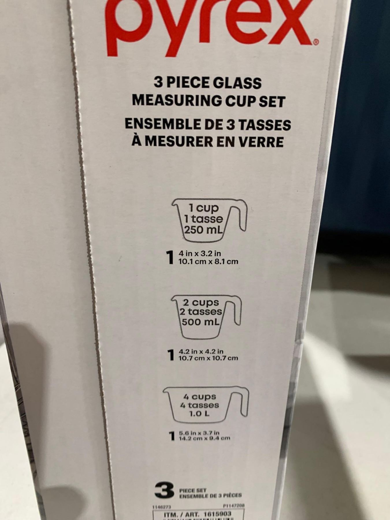Pyrex 3 Piece Glass Measuring Cup Set