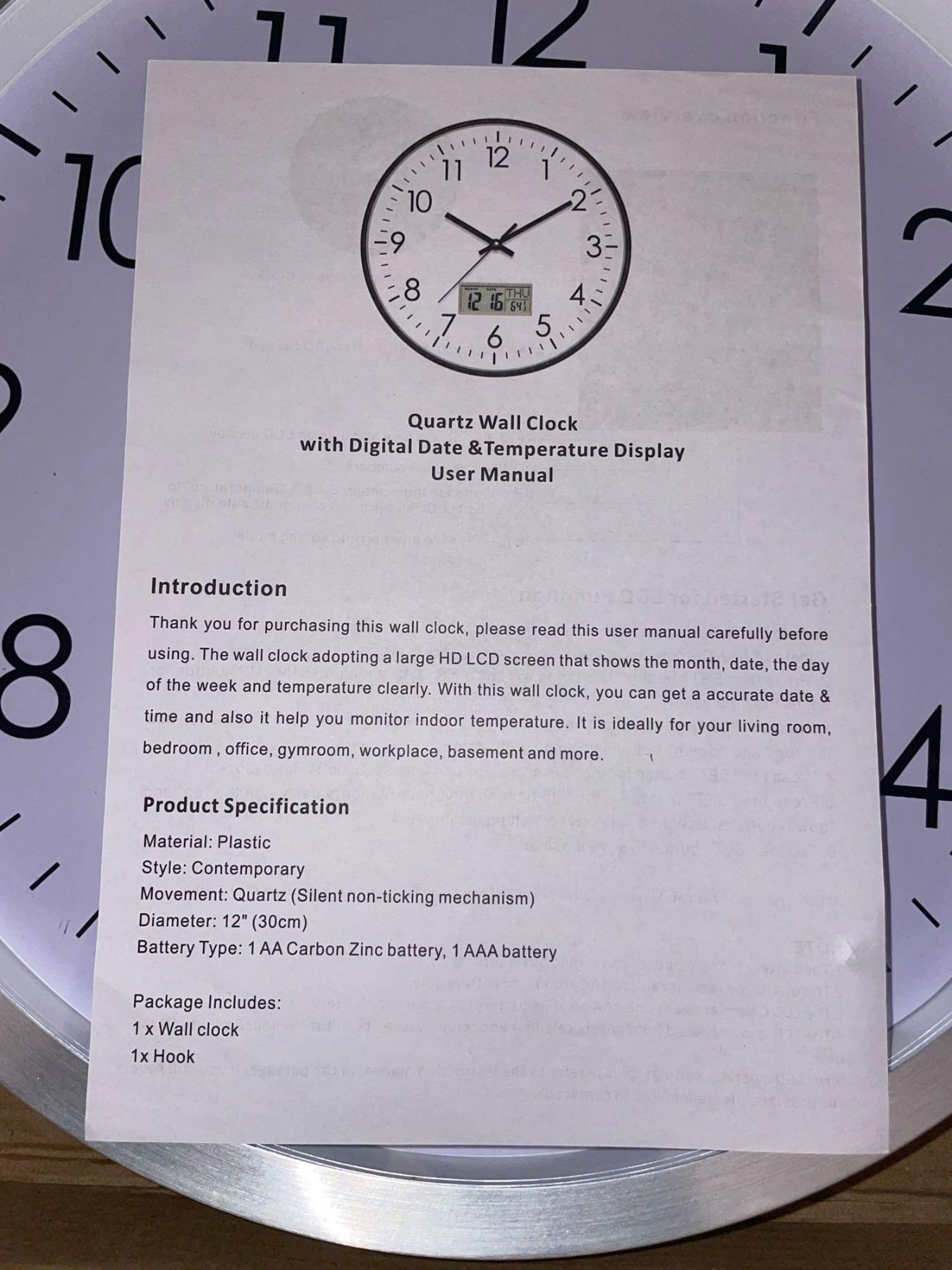 Quartz Wall Clock with Digital Date & Temperature Display