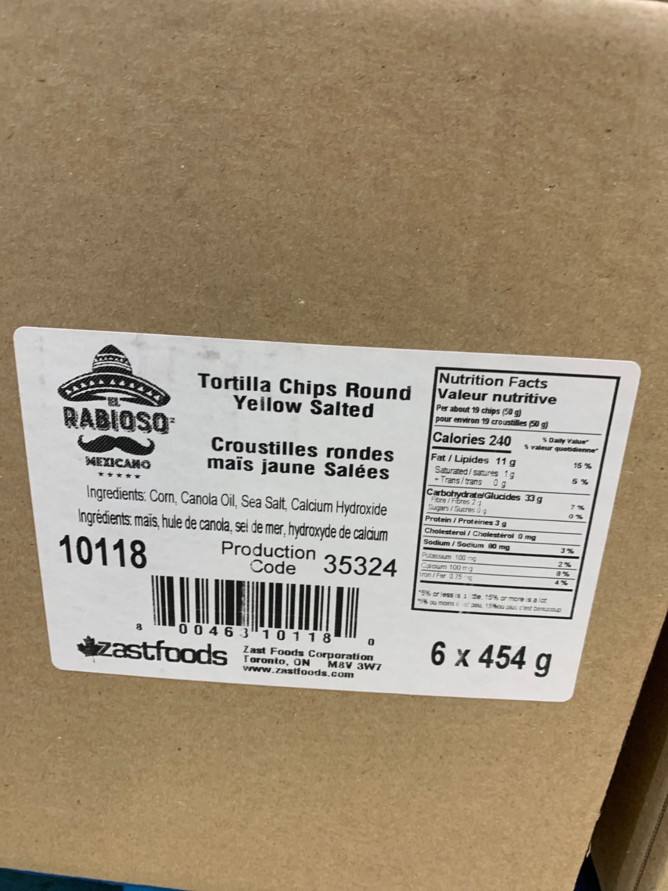 Rabioso Tortilla Chips Round Yellow Salted, 12 x 454g Bulk Packages