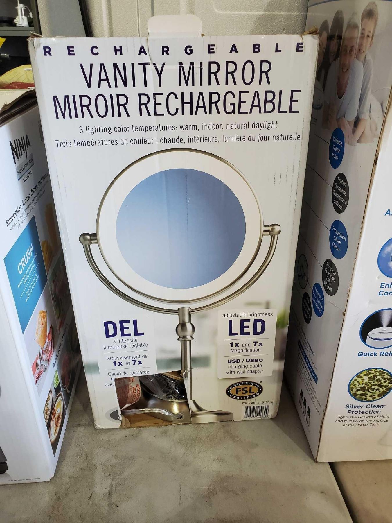 Rechargable Free Standing, Magnifying Vanity Mirror with LED Lighted Frame