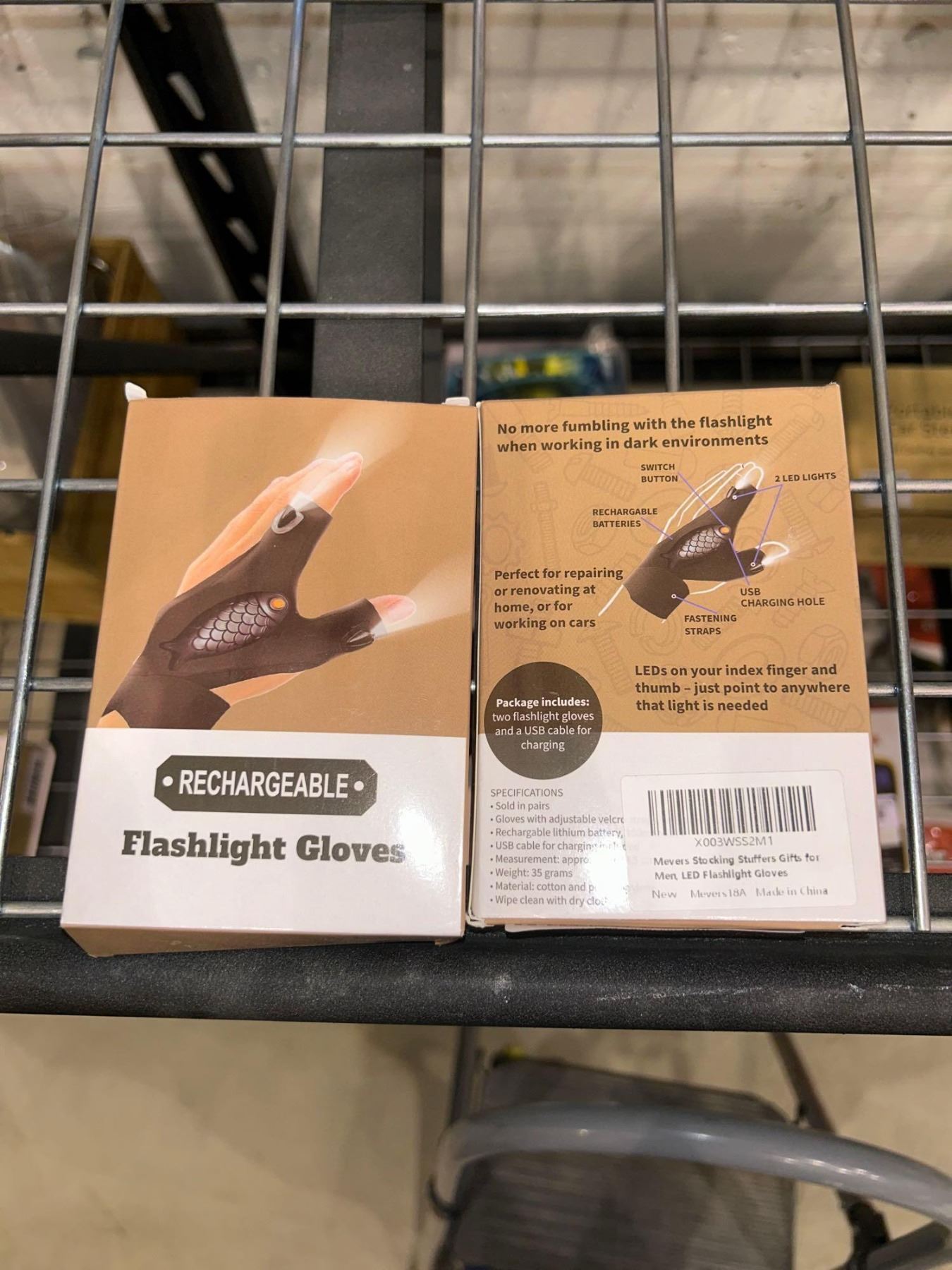 Rechargable flashlight gloves, lot of 2 pairs