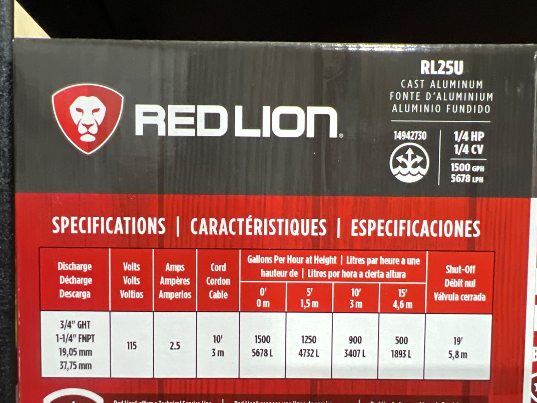 Red Lion RL25U Multi-Purpose Submersible Pump, 1/4 HP, 115V