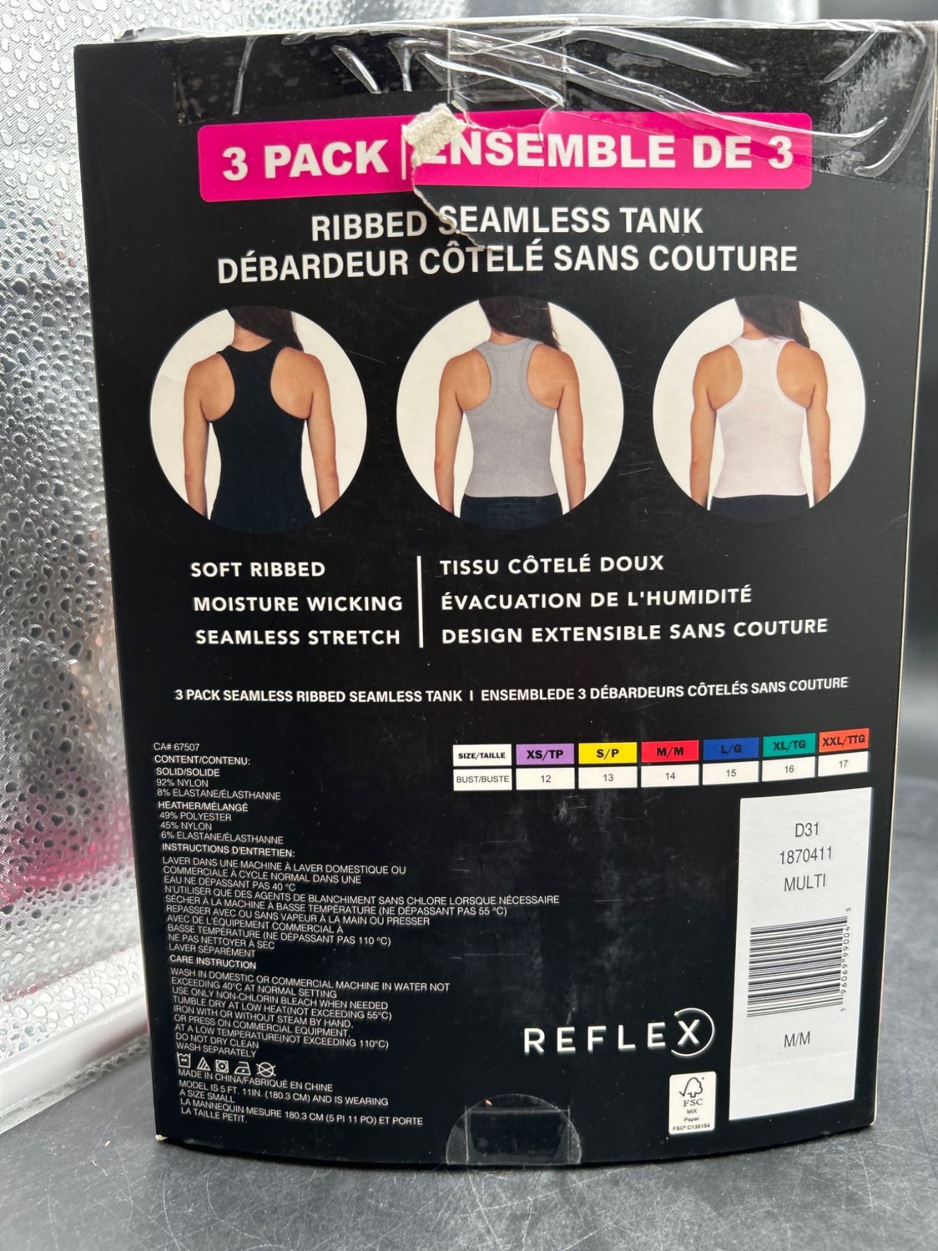 Reflex 3-Pack Ribbed Seamless Tanks, Size med Multi-Color