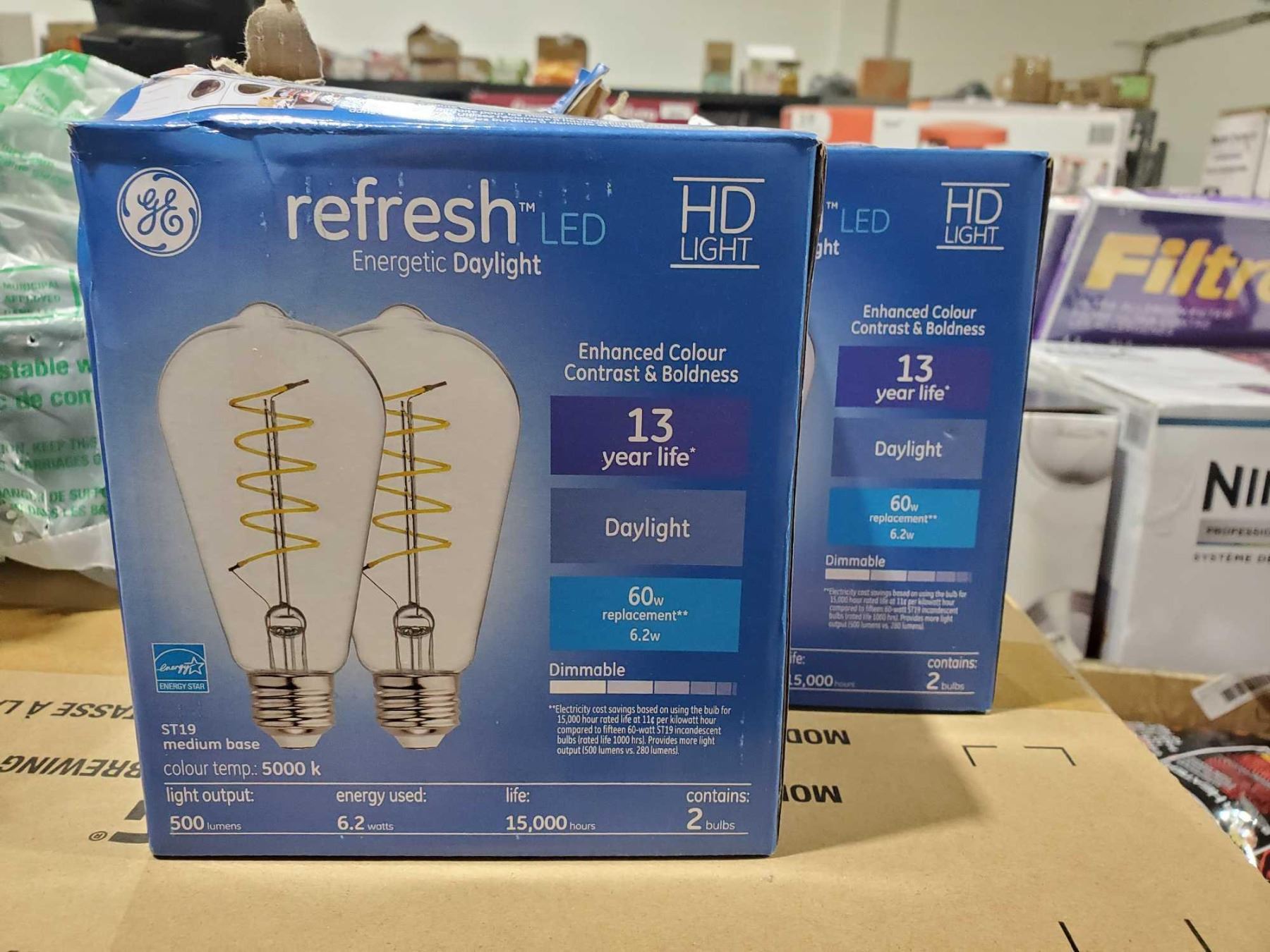 Refresh LED. Energetic Daylight ST19 medium base color temp 5000kl light output 500 lumens 2 boxes of 2 bulbs