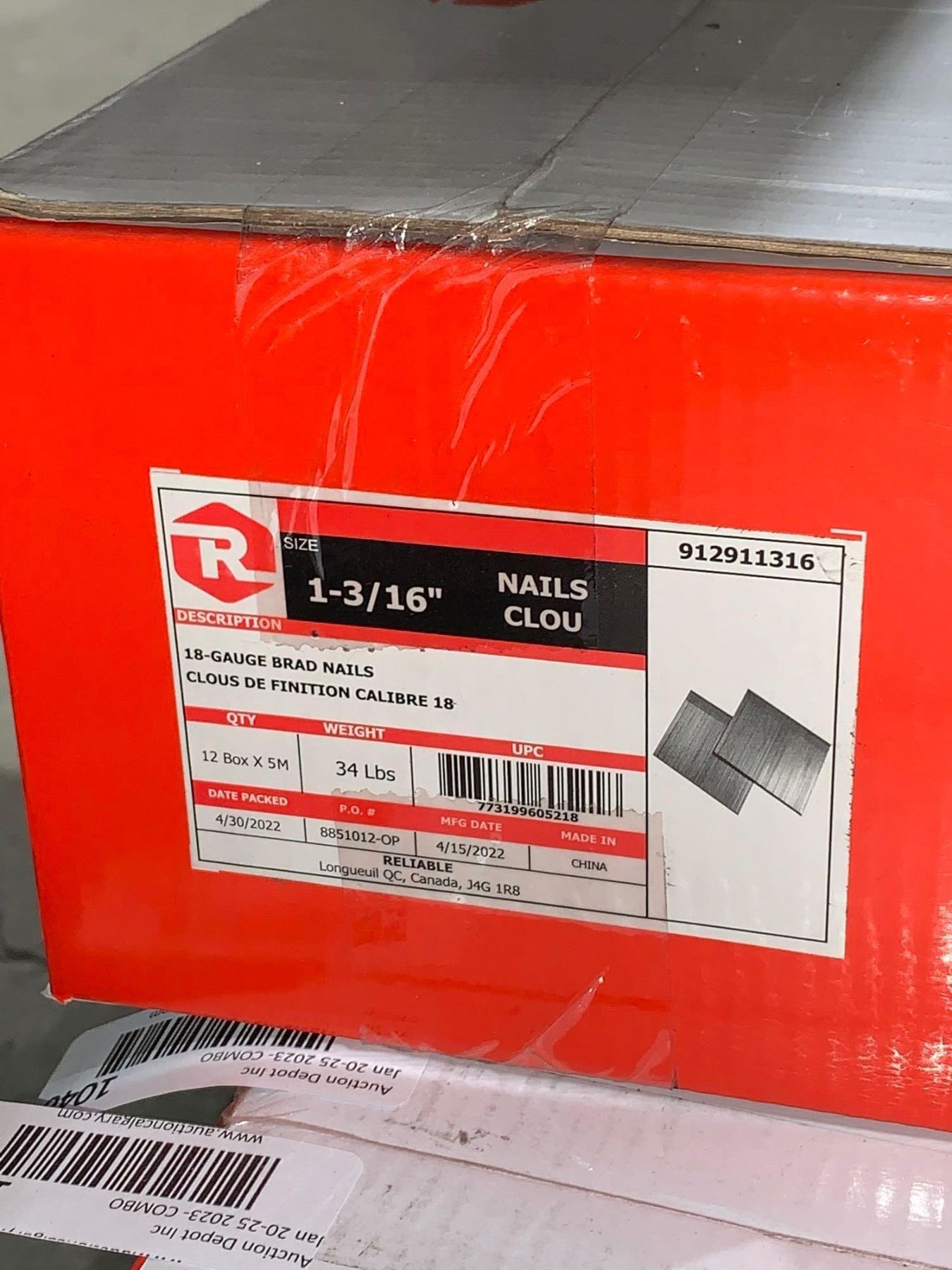 Reliable 1 3/16" Nails 18-Gauge Brad Nails 12 box x 5M 34lbs