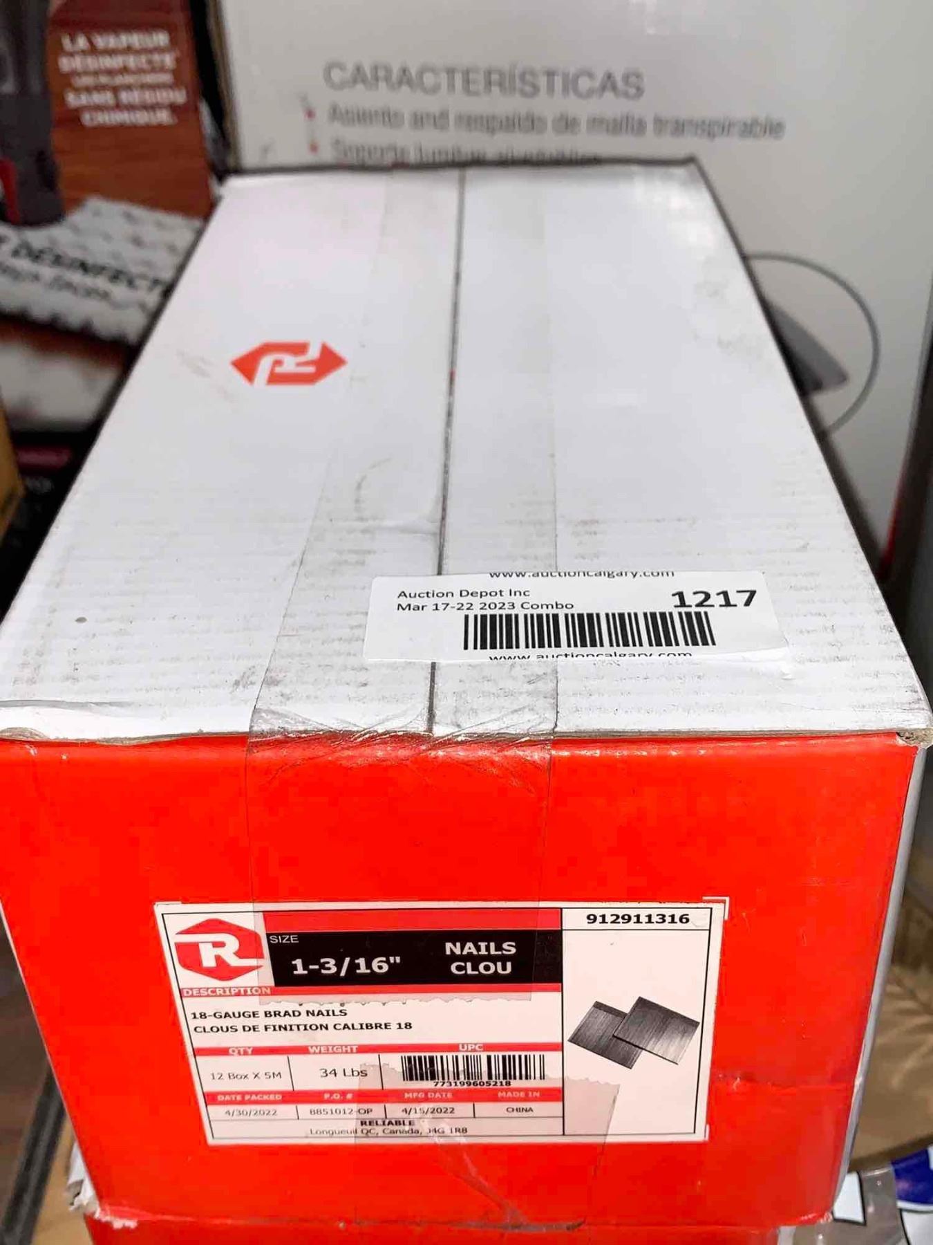 Reliable 1 3/16  Nails 18-Gauge Brad Nails 12 box x 5M 34lbs