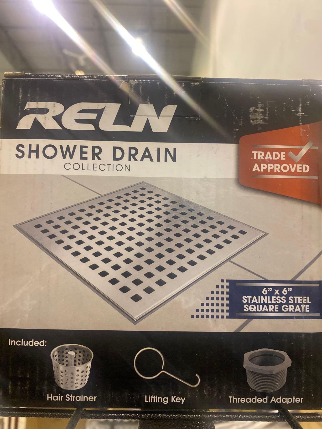 Reln Shower drain 6" x 6" stainless steel square grate