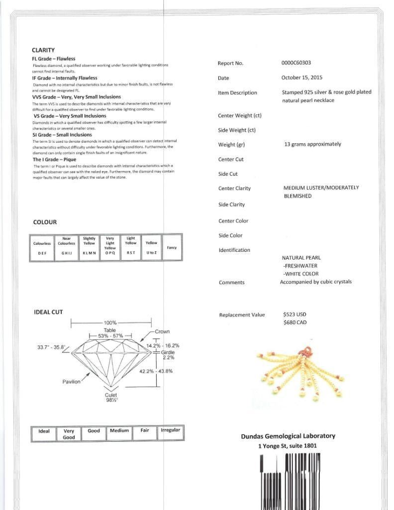 Rgss Freshwater Pearl With Crystal Pendant Necklace, Insurance Value $680 (Estimated Selling Price from $90 to $180)