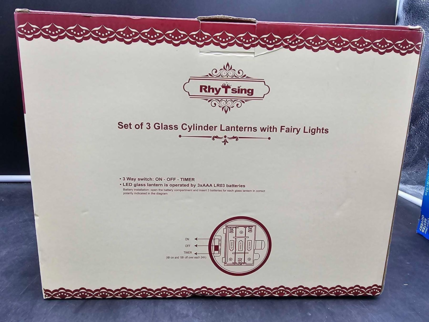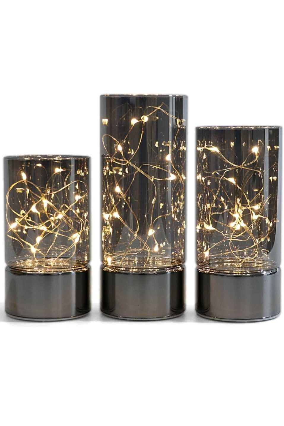 Rhytsing Set of 3 Glass Cylinder Lanterns with Fairy Lights, Decorative Table Lamp Flameless Candle with Timer Function