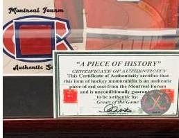 Richard #9 – Collector Framed Picture With Montreal Forum Seat Piece 12.5″ x 15″