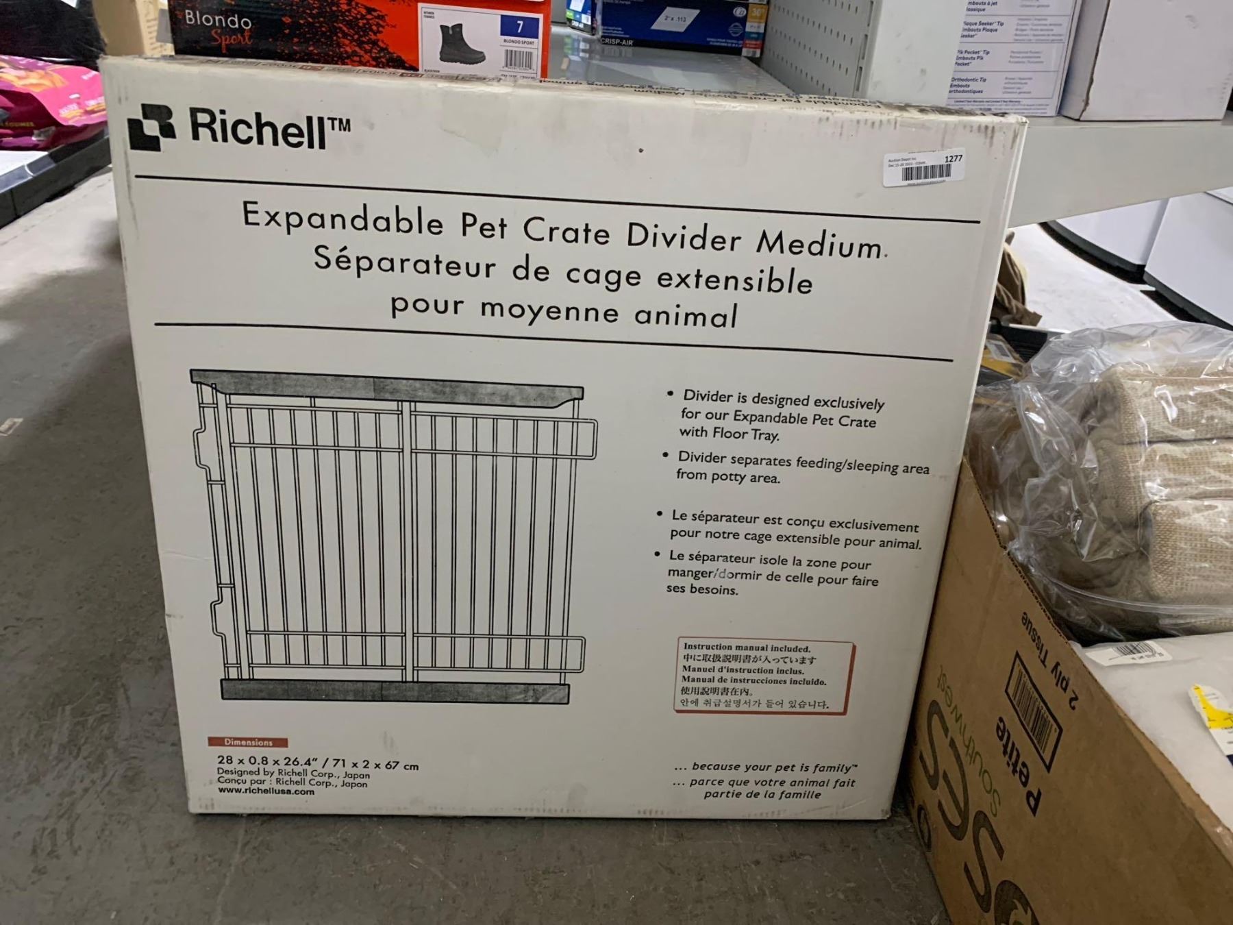 Richell expandable pet crate divider 28"x0.8"x26.4"