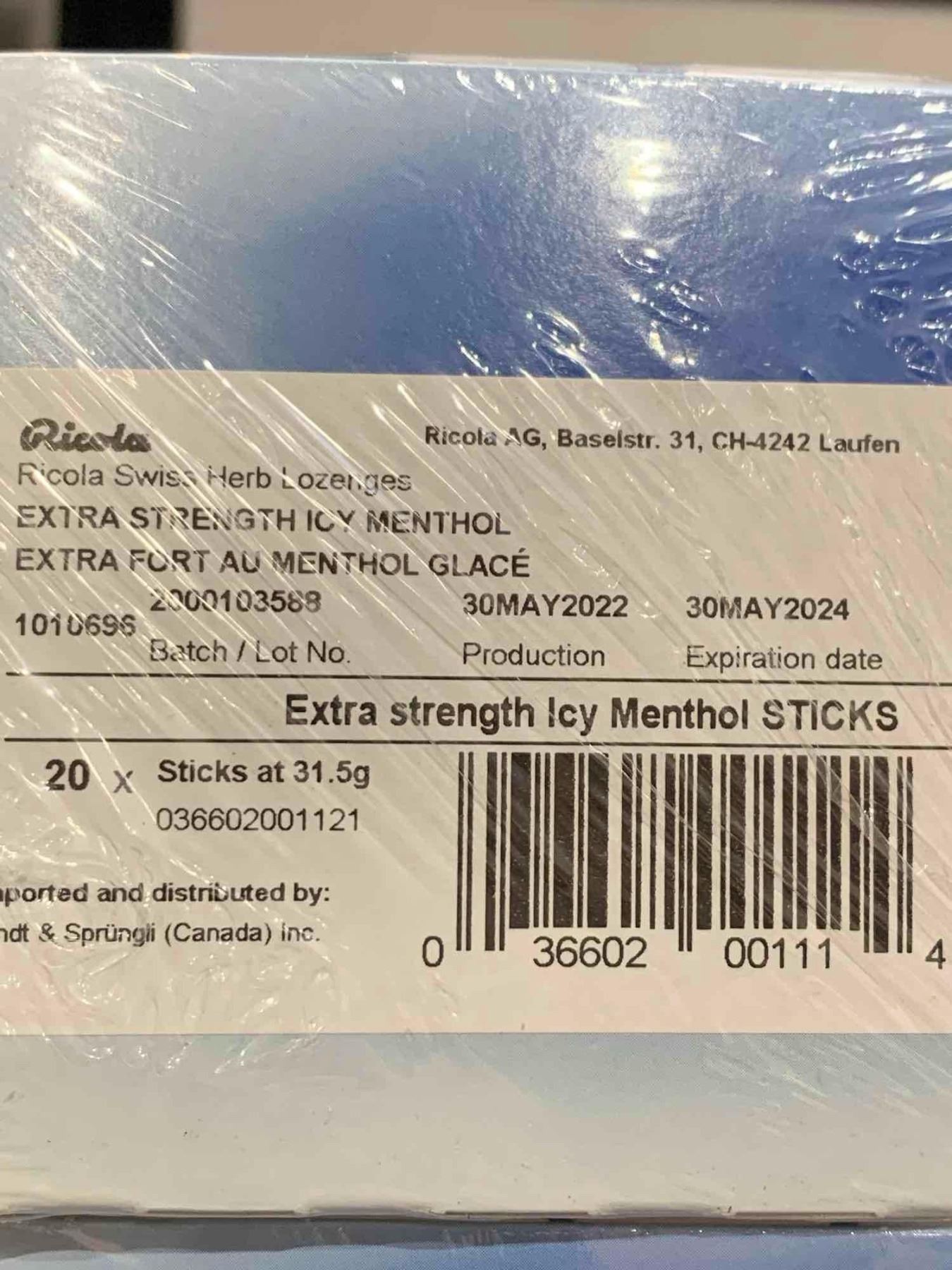 Ricola Extra Strength Icy Menthol Sticks Lozenges (2 x 20 x 31.5g)