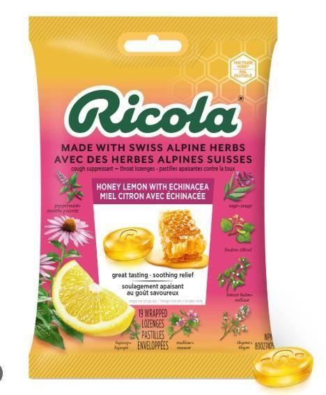 Ricola Honey Lemon Echinacea Lozenges – 8 x 19-Count Bags