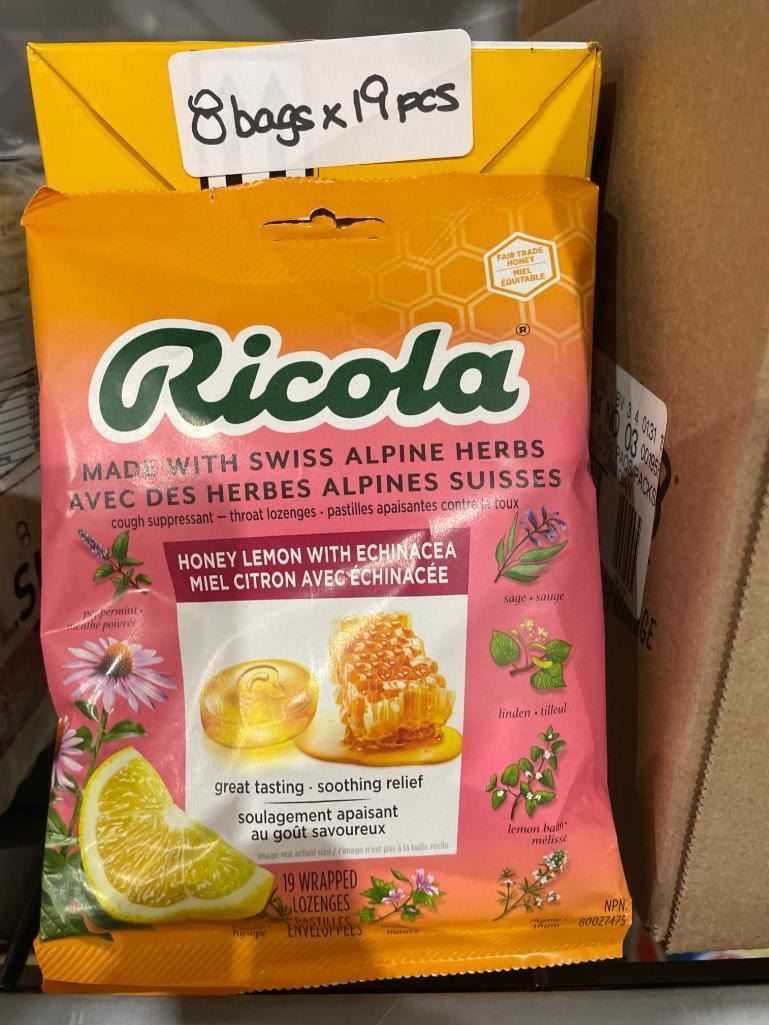 Ricola Honey Lemon With Echinacea Lozenges, 8 Bags of 19 Pieces Each