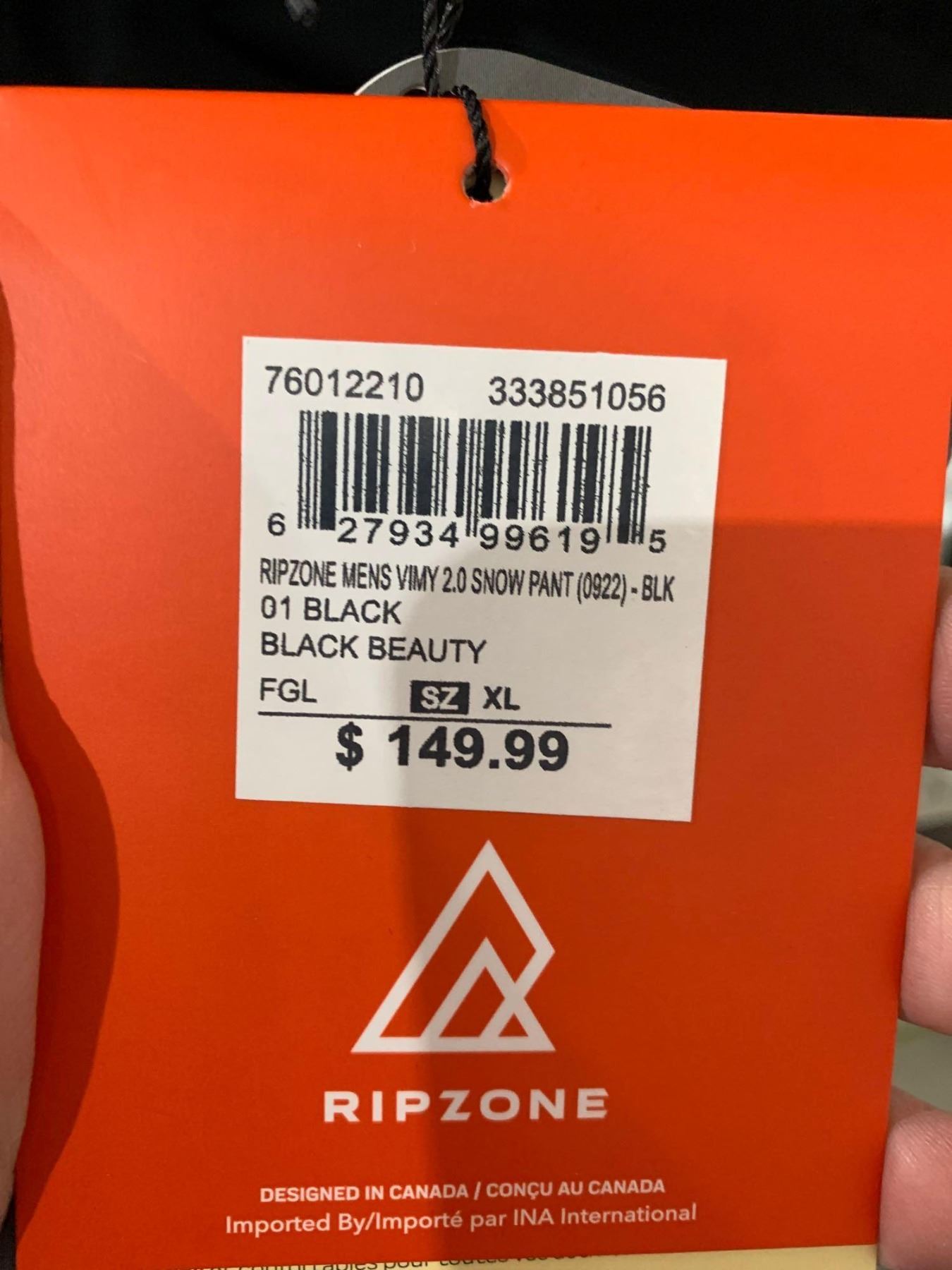 Ripzone Mens 2.0 snow pant black beauty size XL