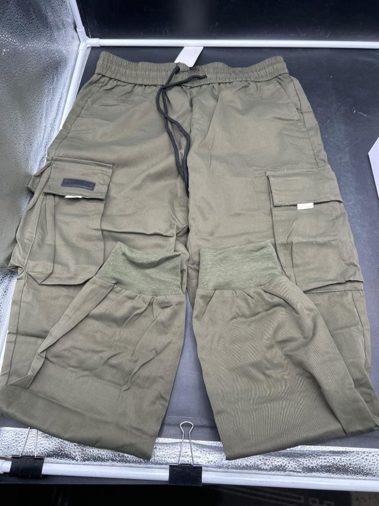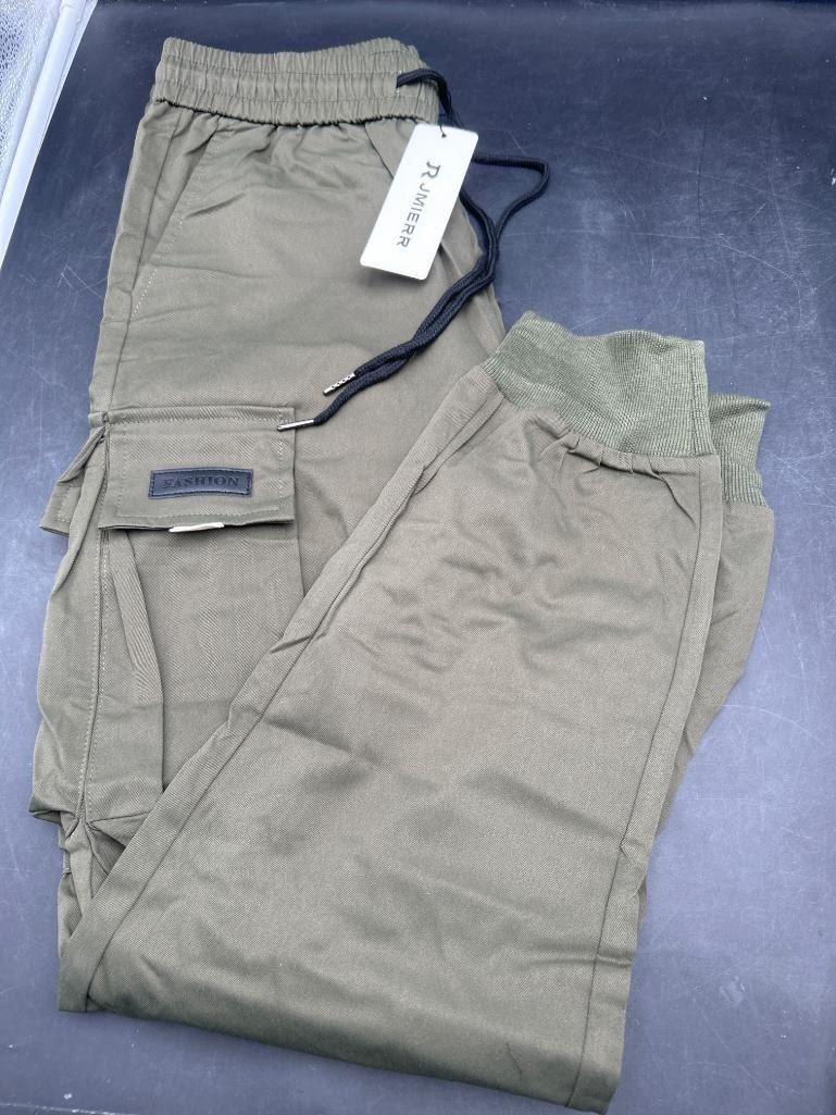 Rjmierr Men’s Olive Green Cargo Jogger Pants with Drawstring, Size 32