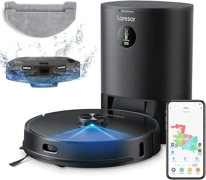 Robot Vacuum and Mop Combo, Laresar L6 Pro Robotic Vacuum Cleaner with Auto Dirt Disposal, App Control, Works with Alexa, Lidar Navigation Smart Mapping, Max 3000pa Suction for Pet Hair/Floors/Carpets