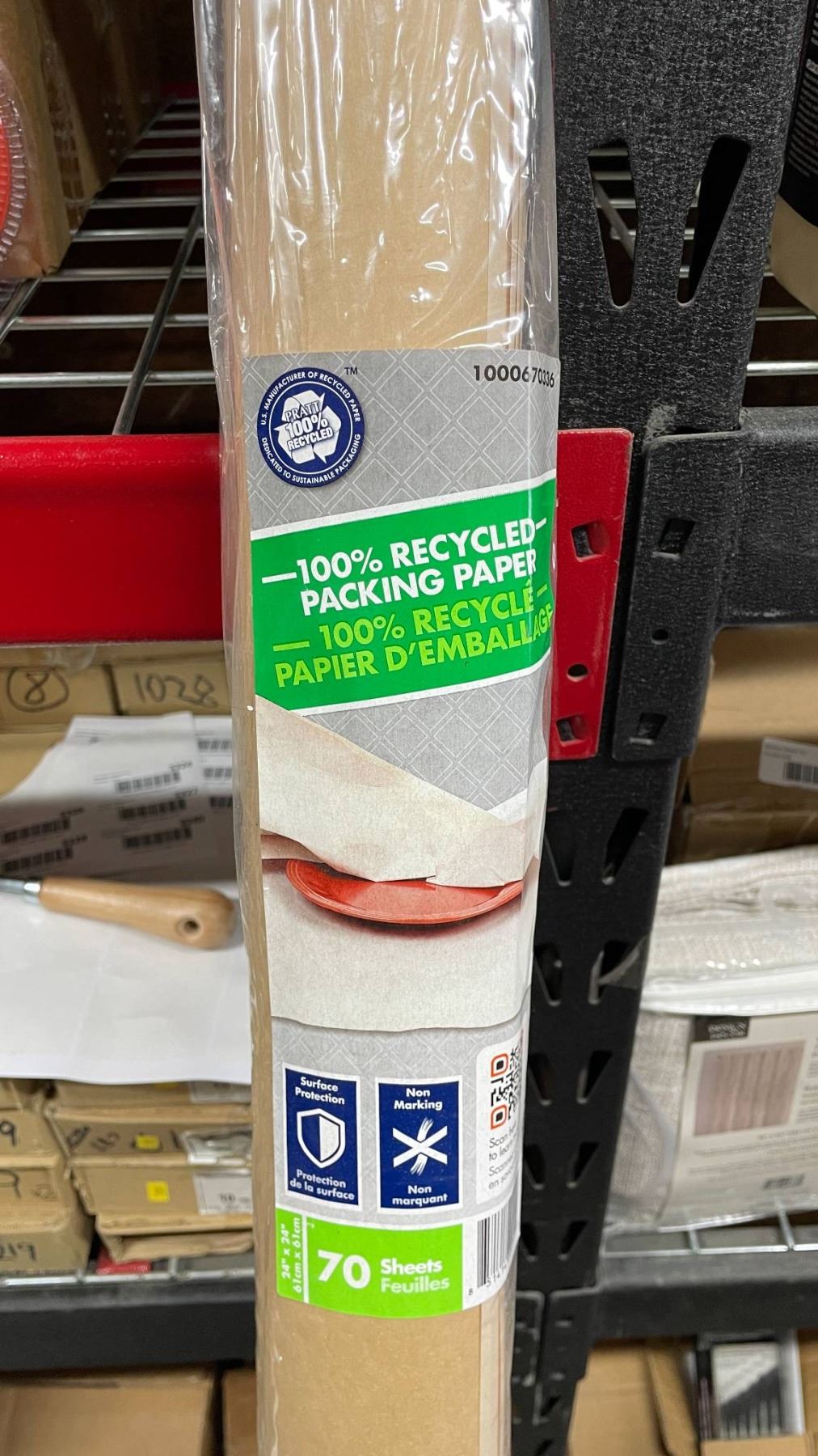 Roll of 100 Percent Recycled Packing Paper with 70 Sheets