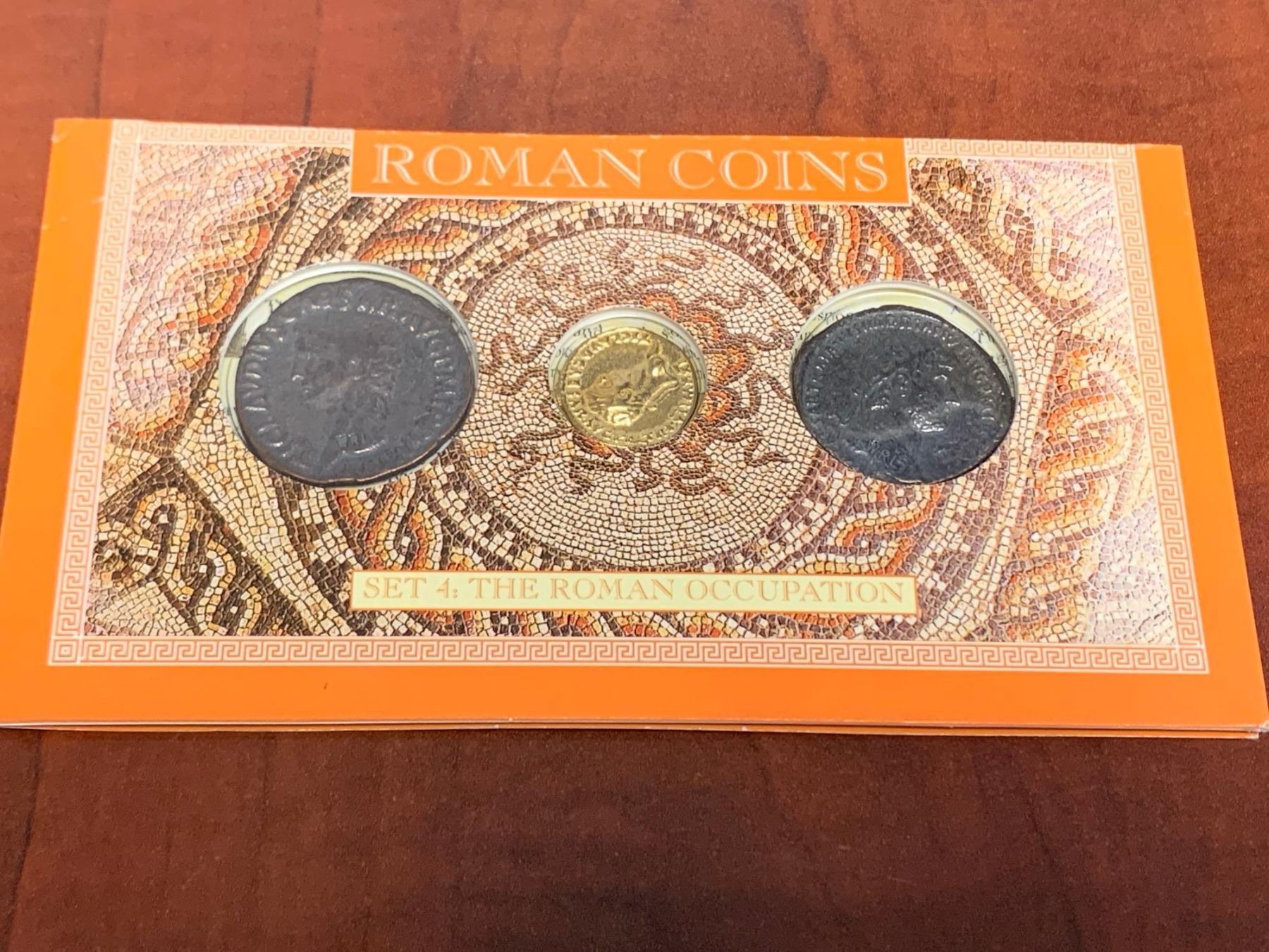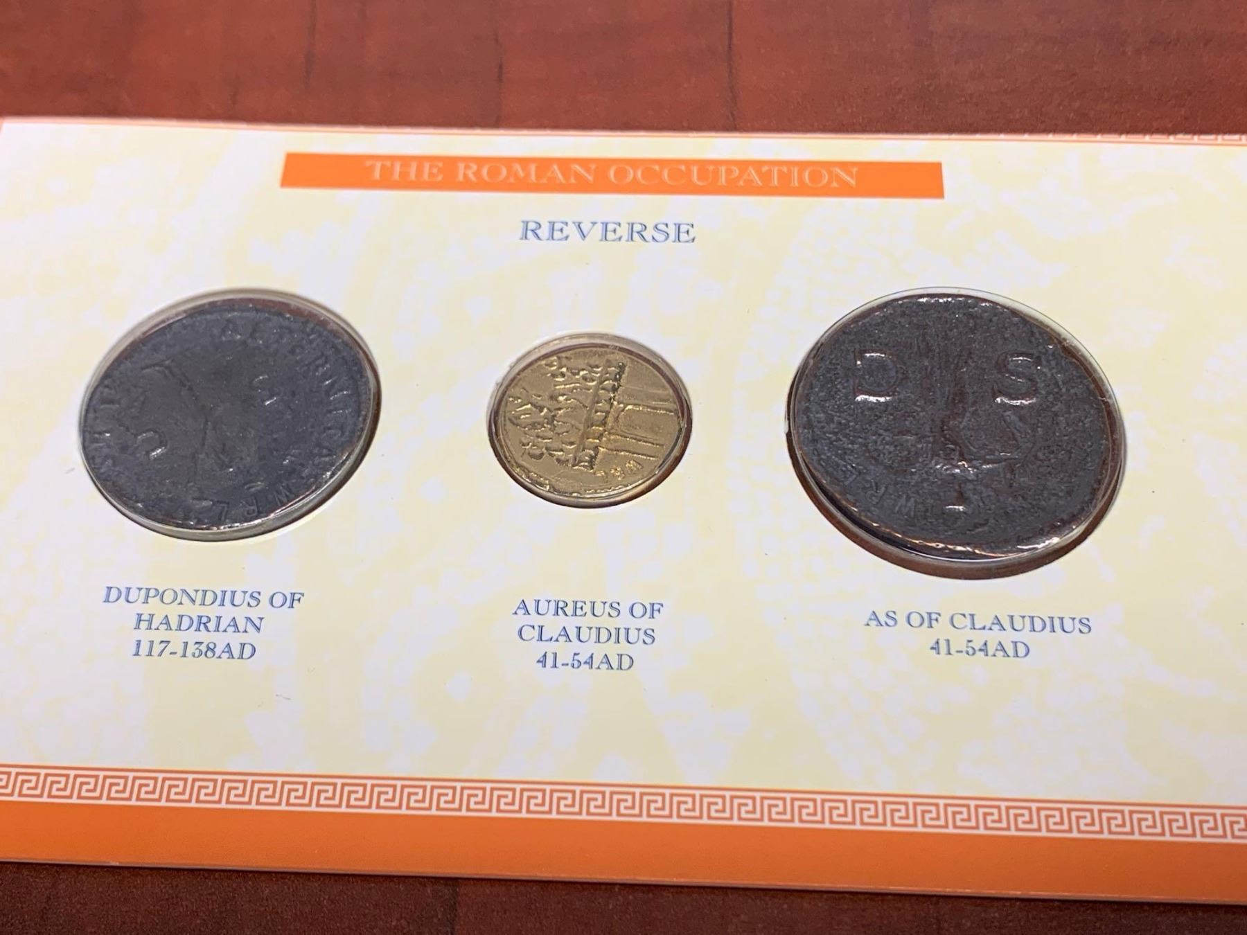 Roman Coins of the roman Occupation - Lot of 3 includes: Dupondium of Hanrian 117-138AD, Aureus of Claudius 41-54AD & As of Claudius 41-54AD- issued by Westair Reproductions