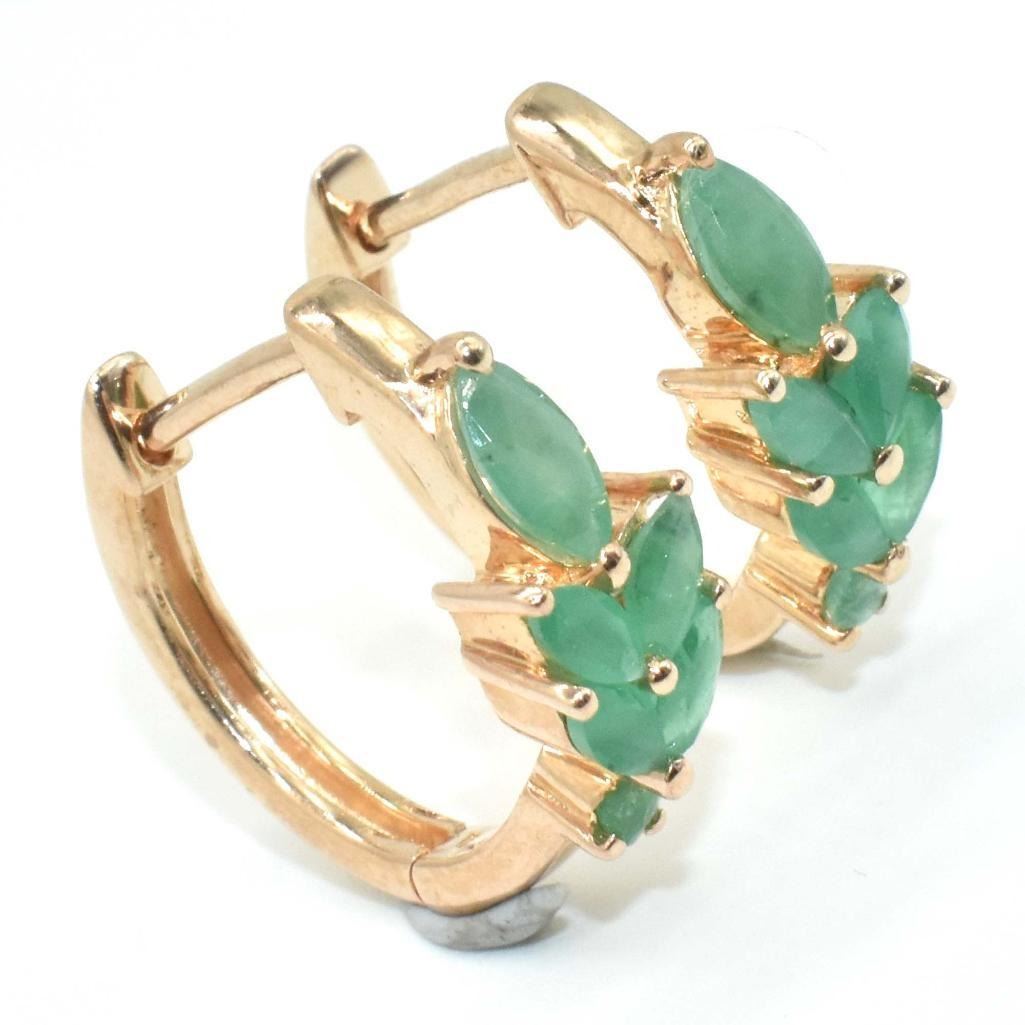 RoseGold Plated Silver Emerald (3.9ct) Rose Gold Rhodium Plated Earrings (~weight 3.9g), Suggested Retail Value $300