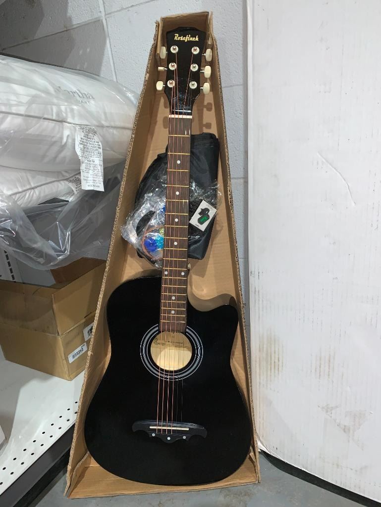 Rosefinch black childrens accoustic guitar with accessories and bag