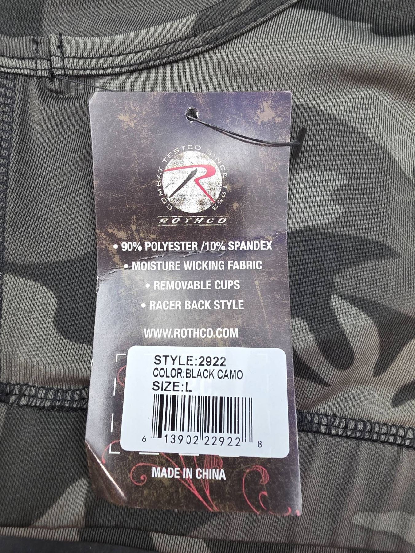 Rothco Camo Workout Performance Sports Bra, Style 2922, Size L