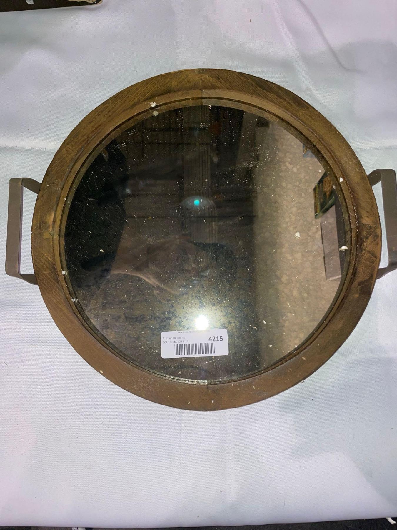 Round Rustic Wood tray with Distressed Mirror