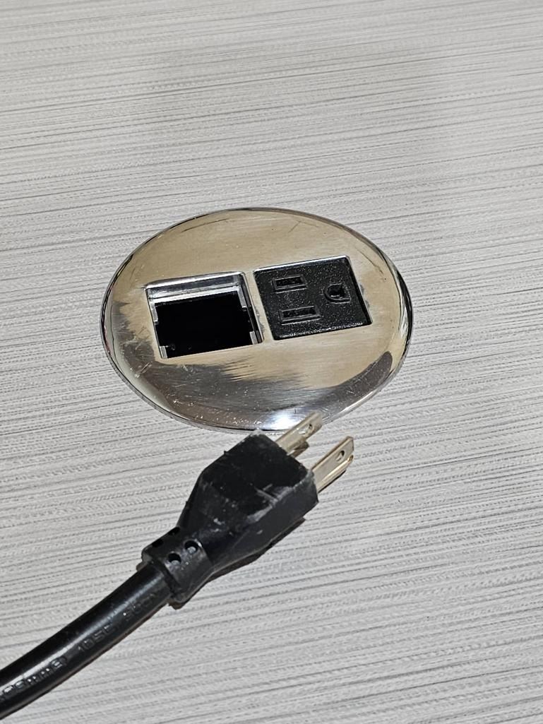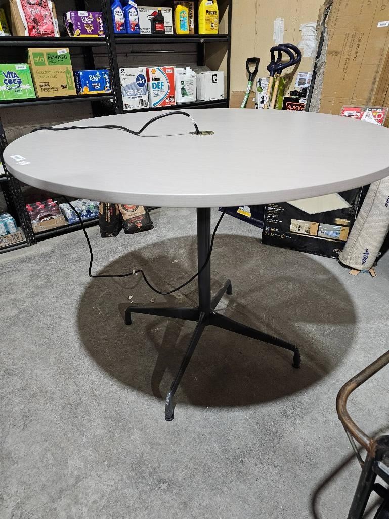 Round Table with Metal Base and Integrated Power Outlet – 54?D x 42?T