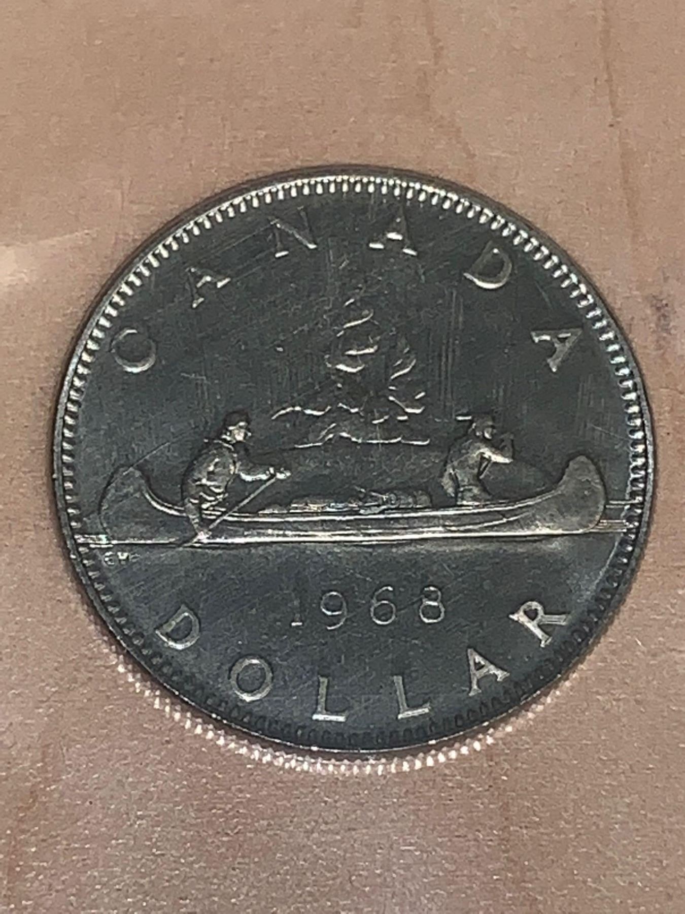 Royal Canadian Mint 1968 Canoe One Dollar Coin. mint sealed