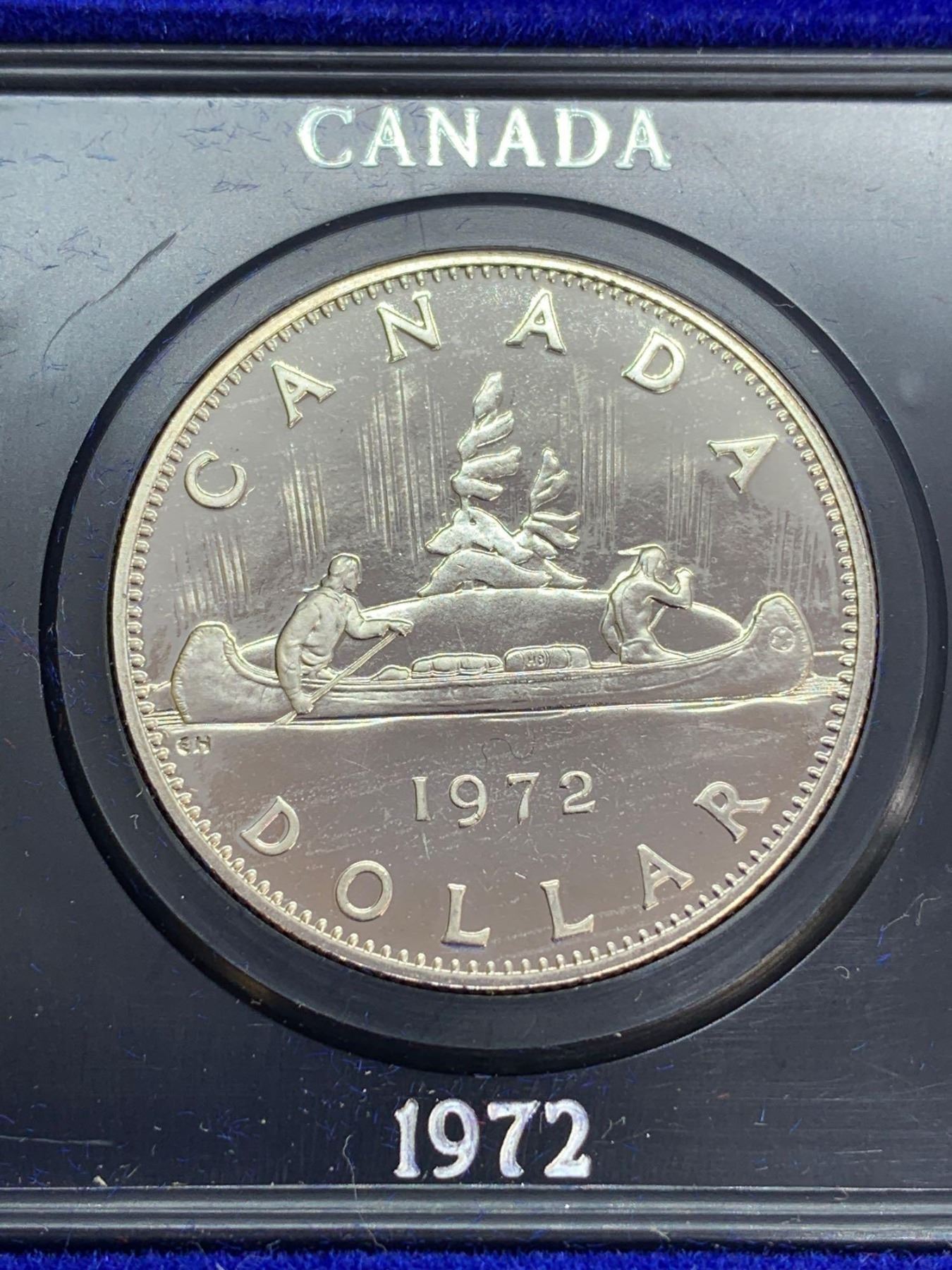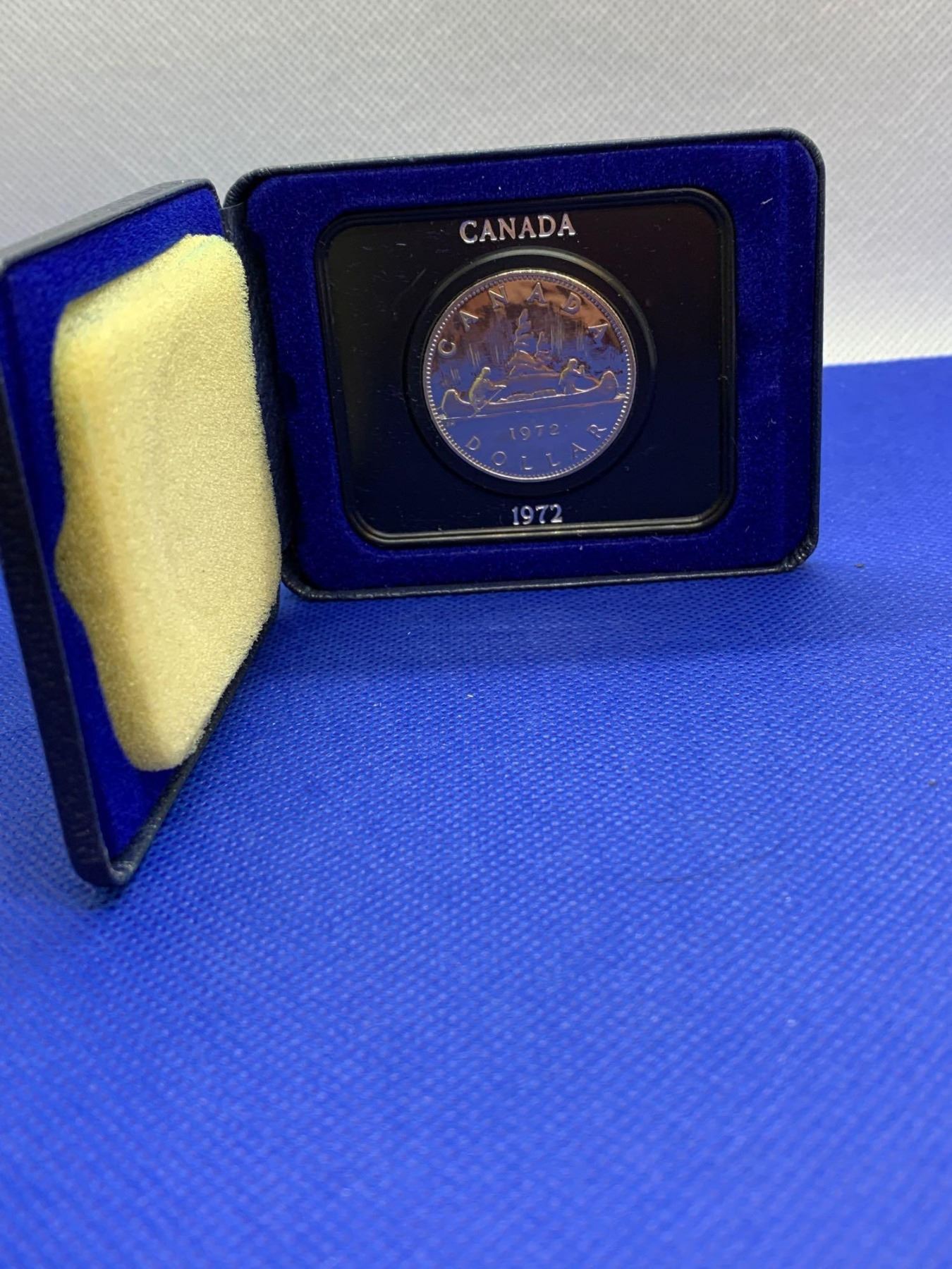 Royal Canadian Mint Cased 1972 dollar coin with display