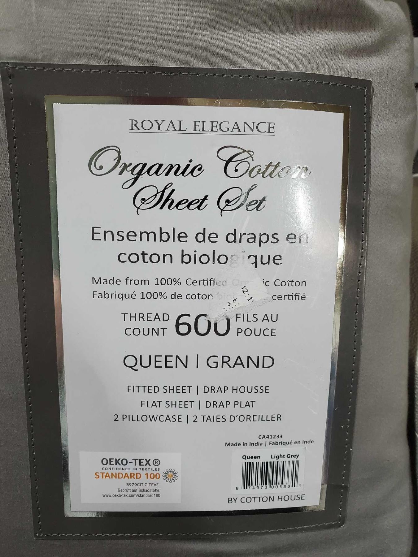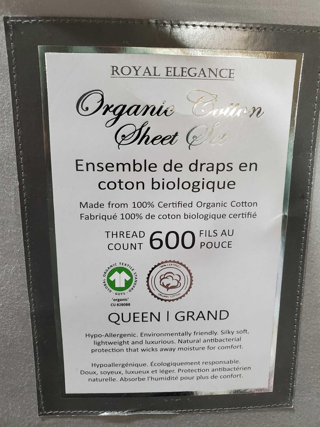 Royal Elegance Organic Cotton Queen Size Sheet Set