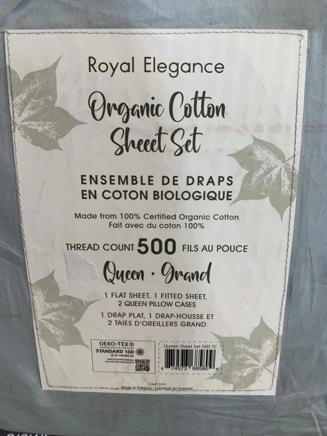 Royal Elegance Organic Cotton Sheet Set 500 Thread Count Queen Size