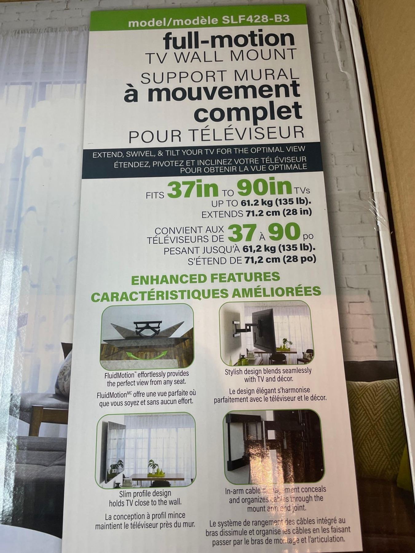 SANUS Advanced Tilt Premium Universal TV Wall Mount for 37” to 90” Flat-Panel TVs - Low Profile, Smooth Extension & Easy to Install - Model VLT6-B1
