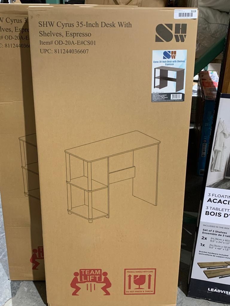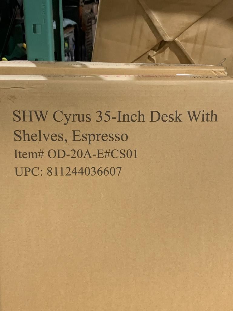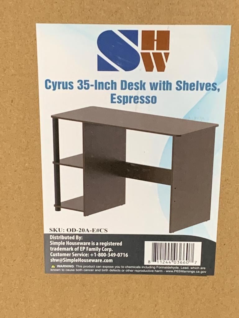 SHW Cyrus 35-Inch Desk With Shelves, Espresso