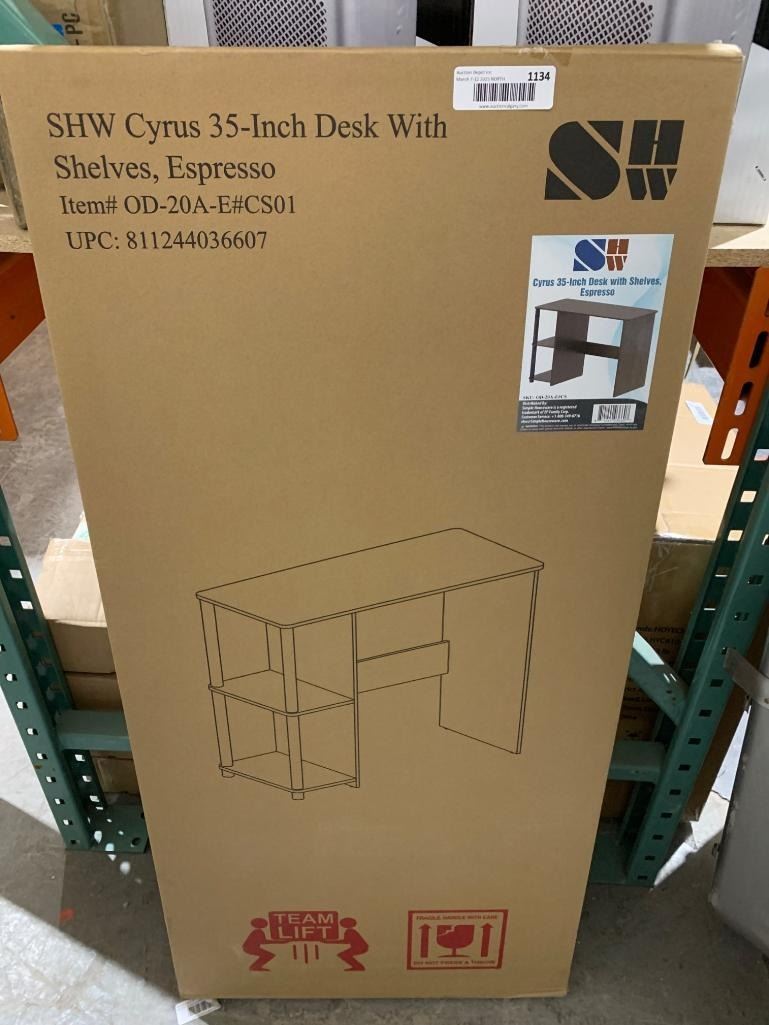 SHW Cyrus 35-Inch Desk With Shelves in Espresso Finish, Model OD-20A-E4C-S01