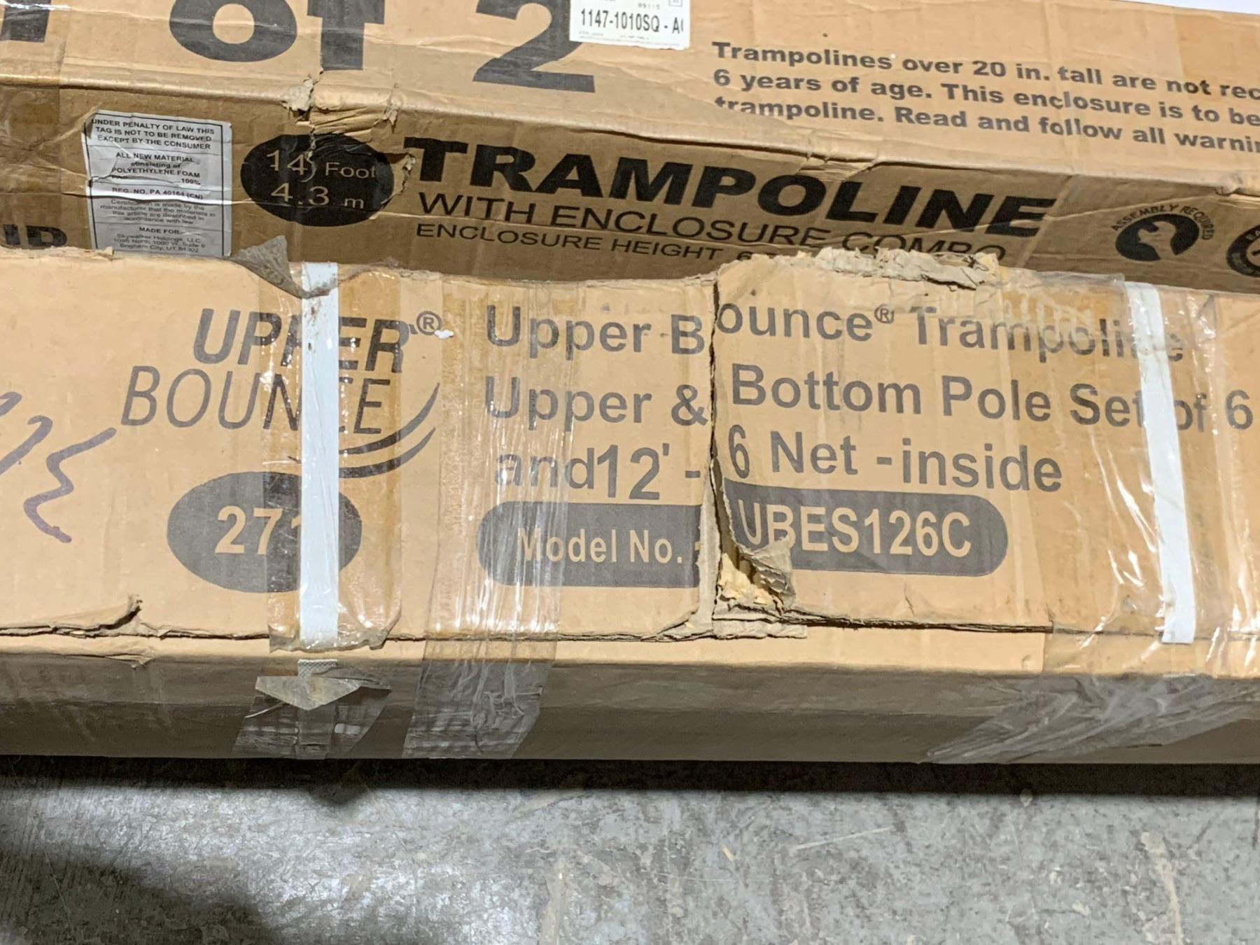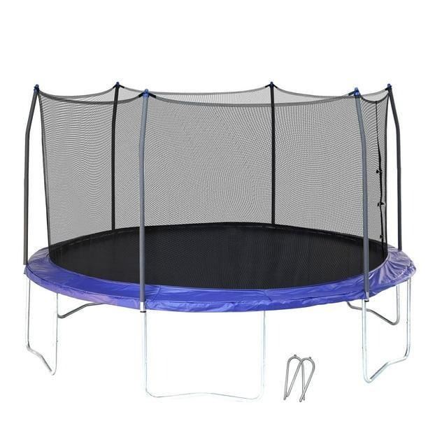 SKYWALKER TRAMPOLINES 14 FT, Round, Bright Blue Outdoor Trampoline for Kids with Safety Enclosure Net and Spring Pad, ASTM Approval, Rust Resistant, 4-Pack, Heavy Duty, Wind Stakes