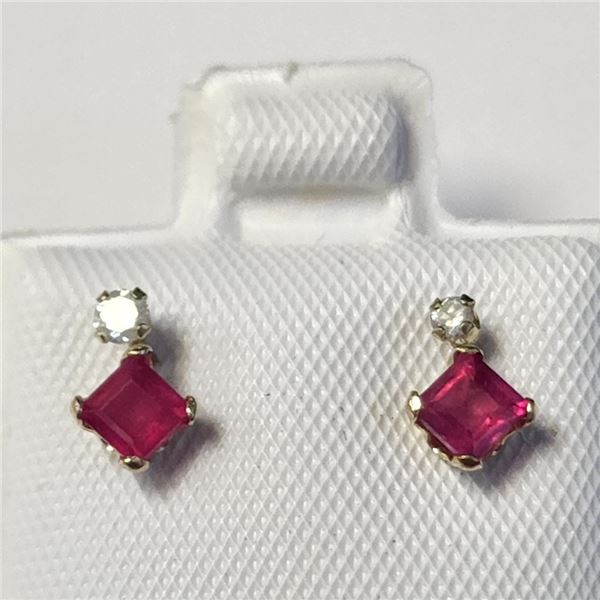 10K Yellow Gold Ruby(0.44ct) Diamond(0.06ct) Earrings (~Size )(Ring is resizable for $40) (~length i488 - 10K Yellow Gold Ruby(0.44ct) Diamond(0.06ct) Earrings (~Size )(Ring is resizable for $40) (~length i