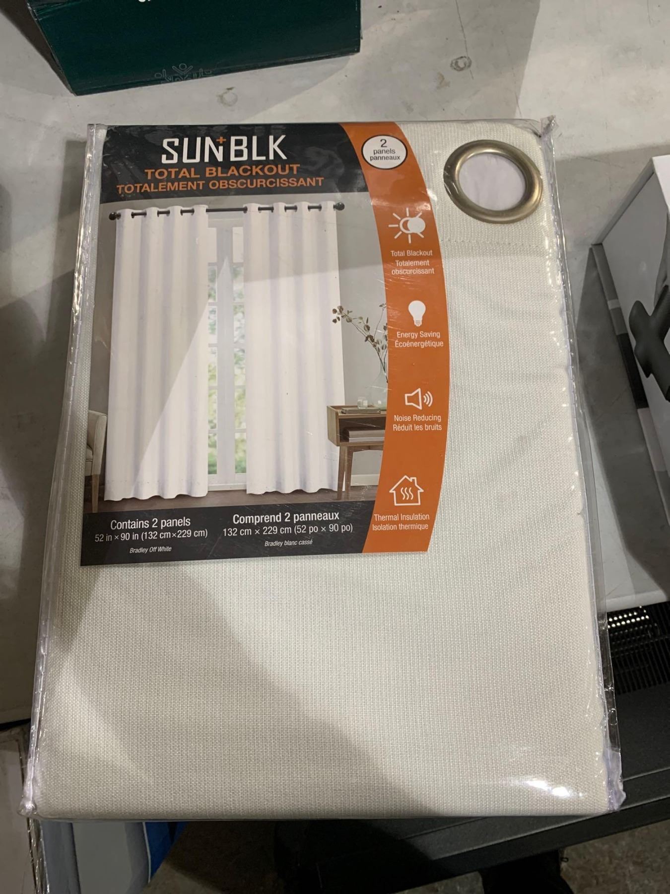 SUNBLK Total Blackout Contains 2 Panels 52"x90"Bradley off white Curtains