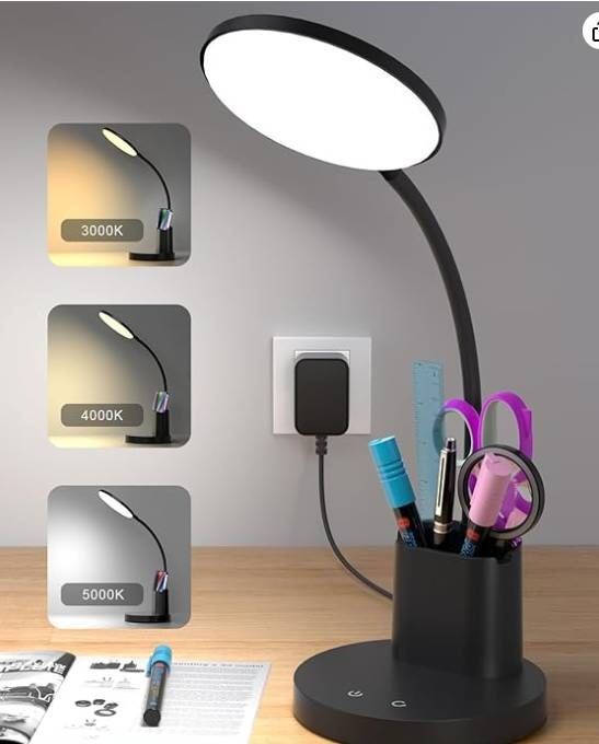 Sailstar Small Desk Lamp, LED Desk Lamps for Home Office, 3 Lighting Modes, 800LM Eye-Caring Desk Light with Pen Holder, Touch Control, Dimmable, 360° Gooseneck