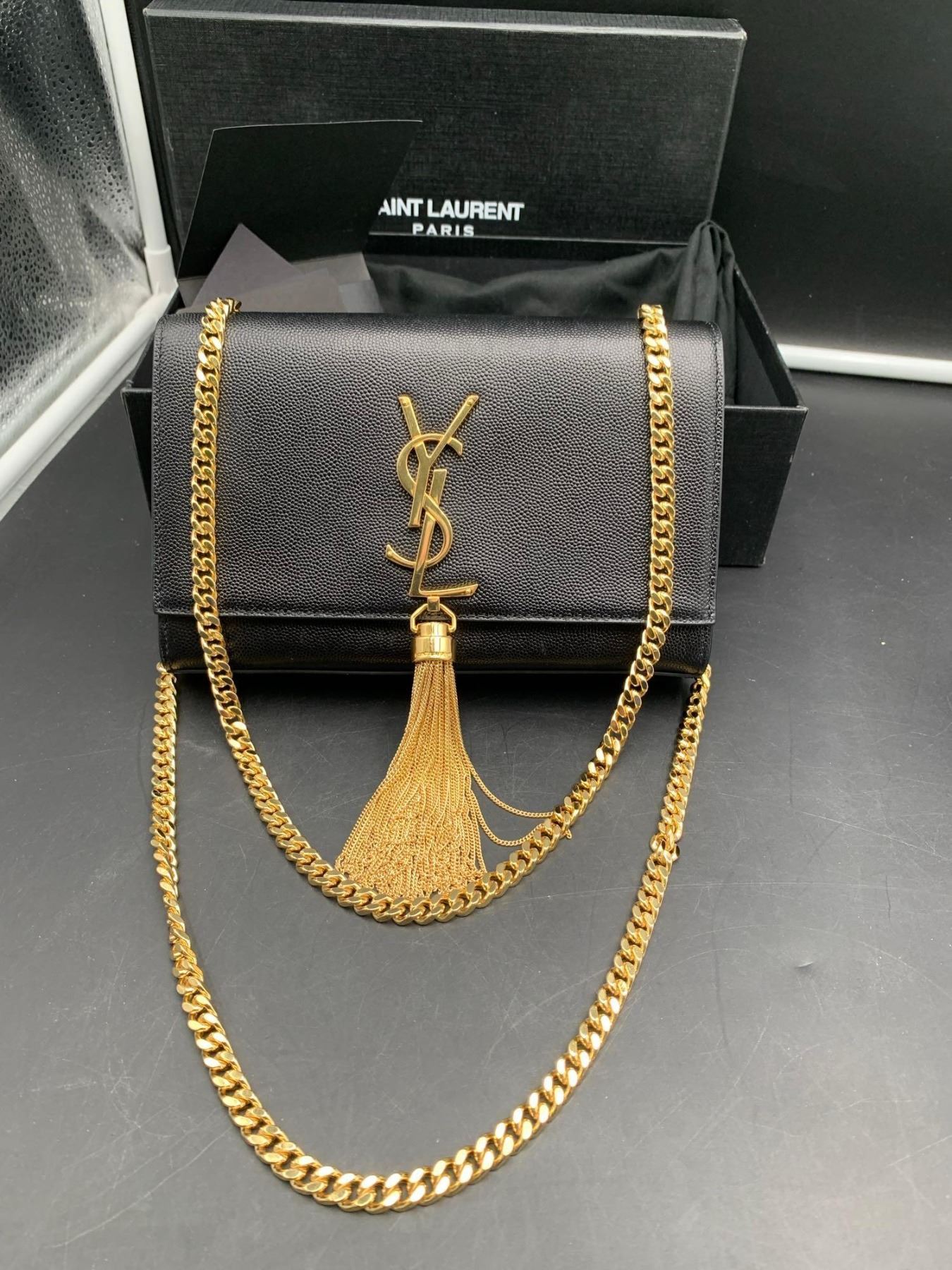 Saint Laurent Paris Black Leather Purse in Gift Box