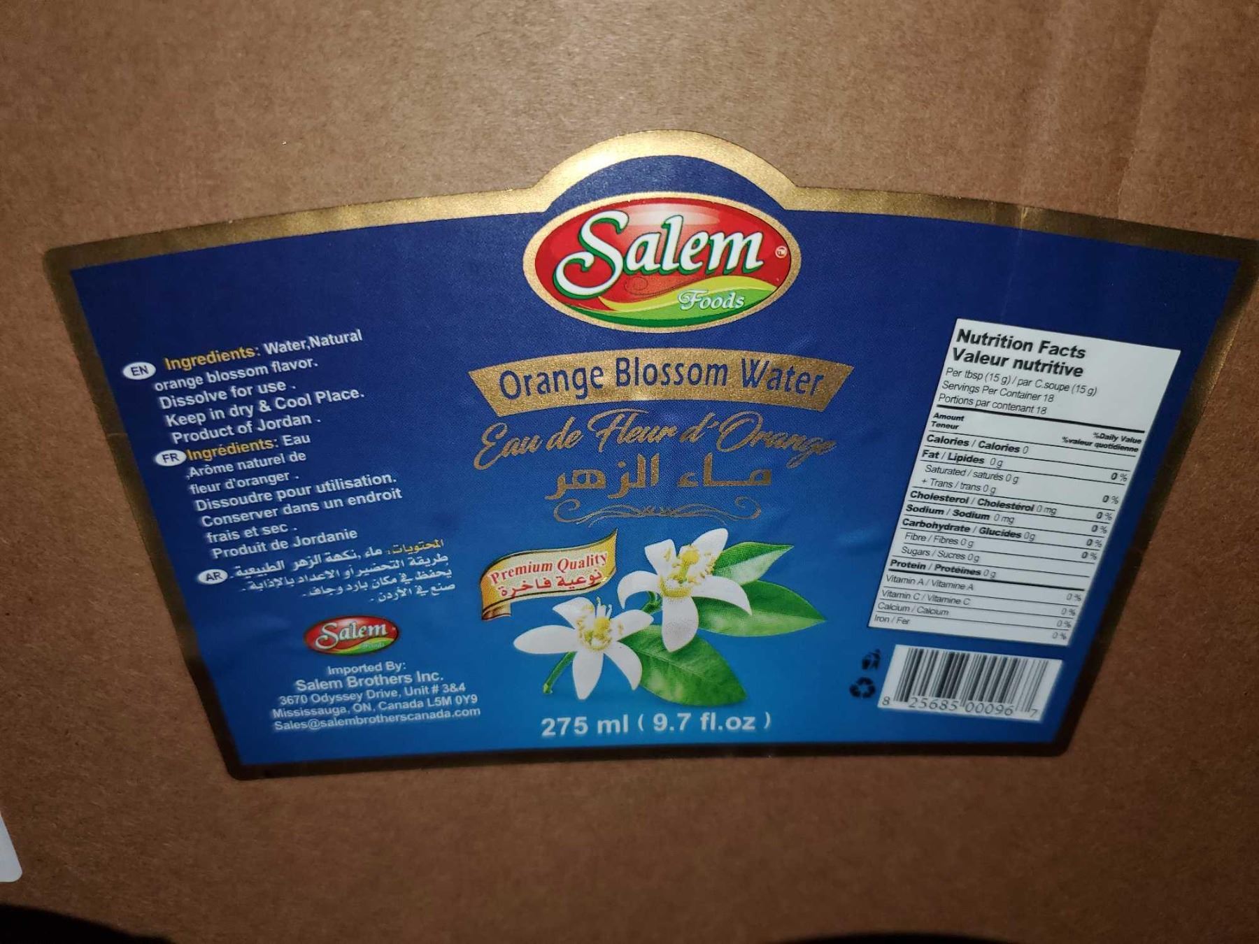 Salem Foods Orange Blossom Water (24 x 275ml)