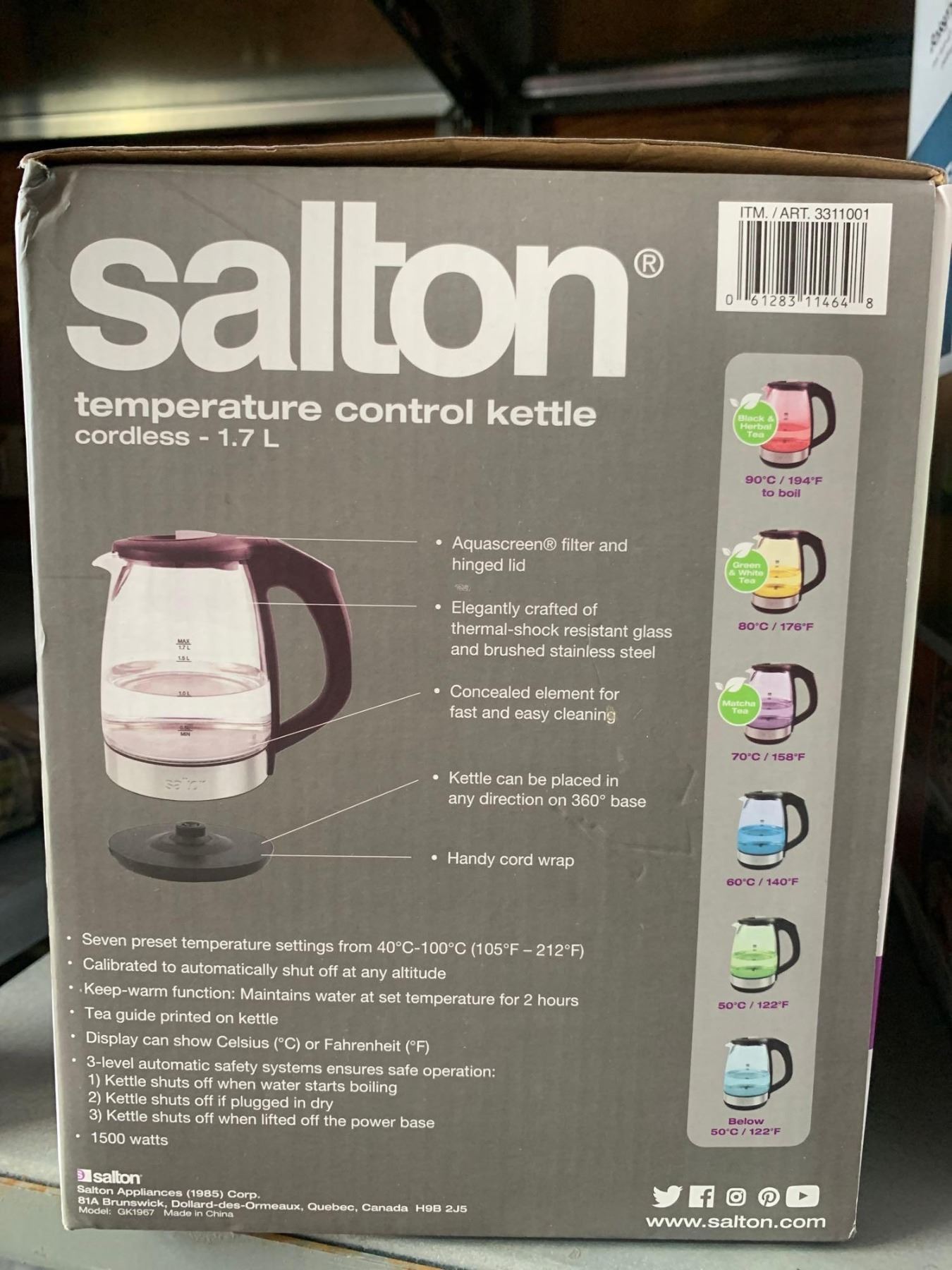 Salton Temperature Control Kettle 1.7L
